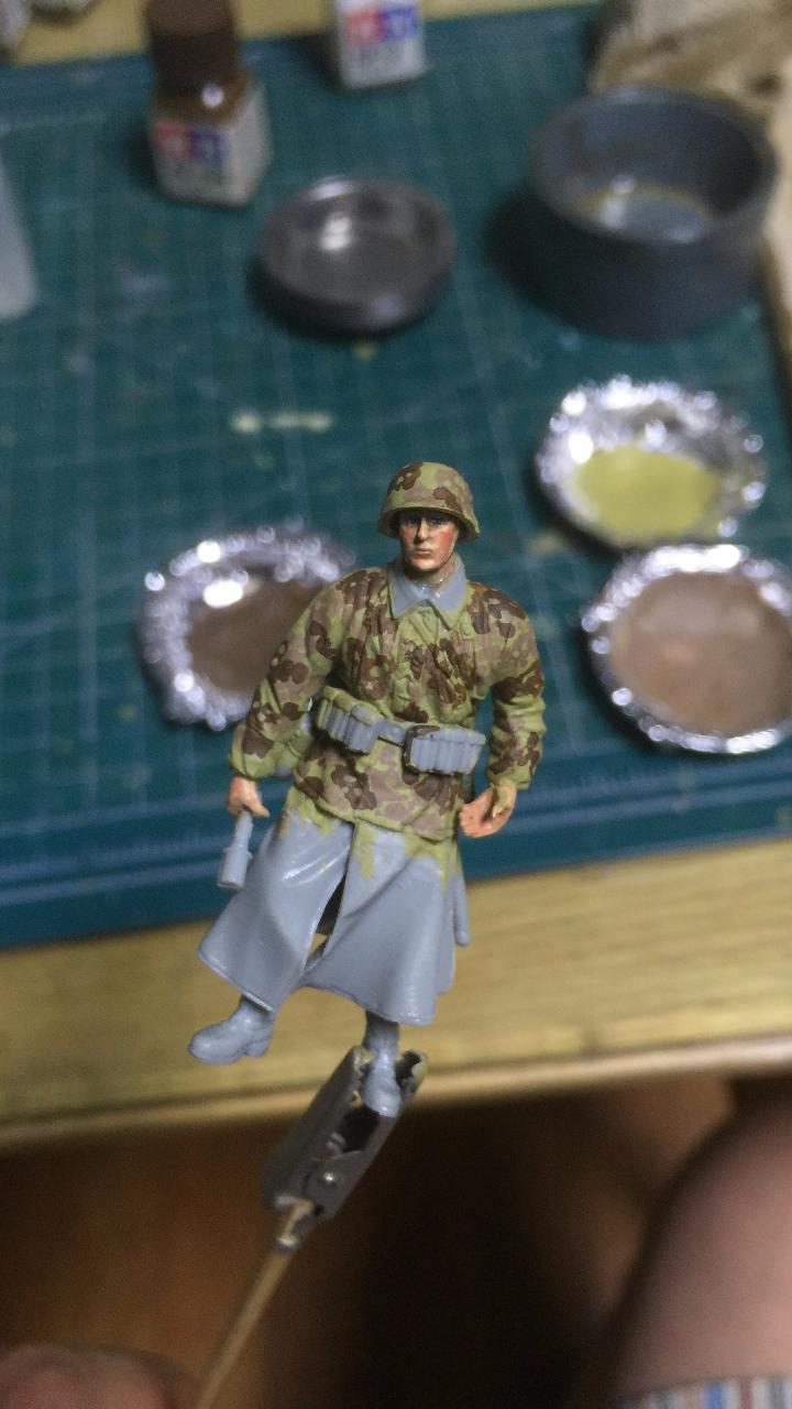 기본 도장 후에 일종의 웨더링 작업을 해서 사실감을 높여 줍니다. 총기에 멜빵도 만들어 붙여주고요.