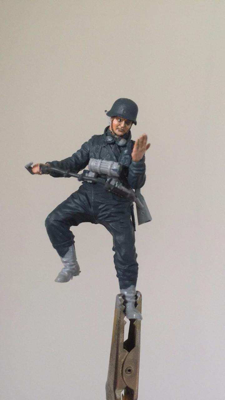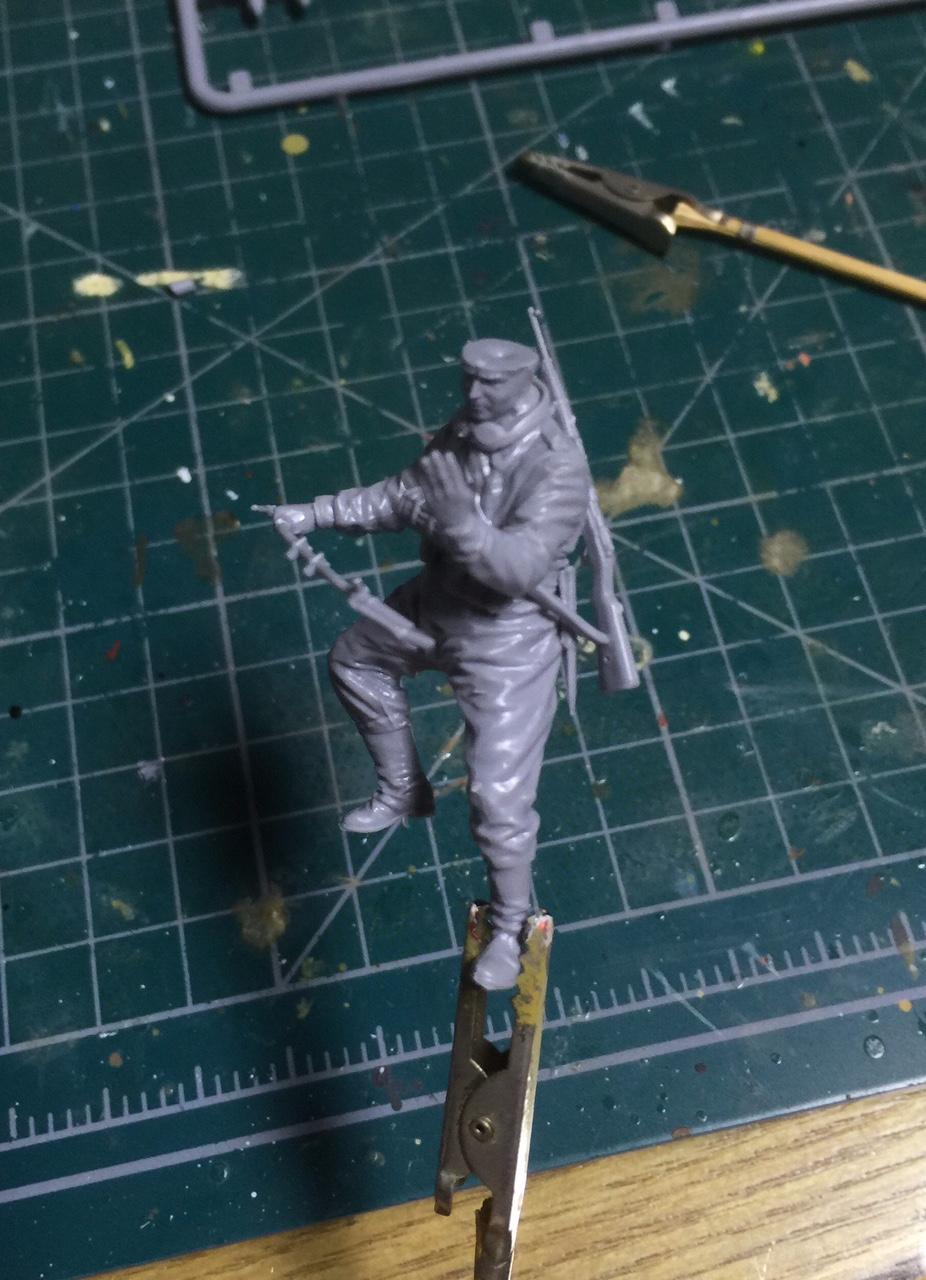 장교는 눈 부분이 뜬건지 감은건지 영 느낌이 안나네요. 도색이 마음에 안들어서 박스아트대로 안경을 쓰고 있는걸 재현해볼까 하는 생각이 들었습니다.