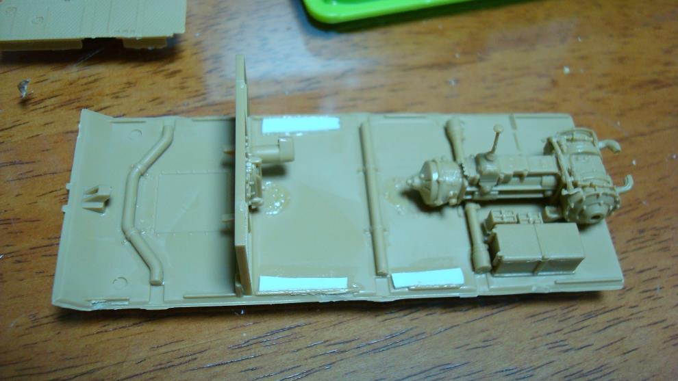 Lower Hull 바닥을 붙일때 변속기와 엔진을 연결하는 샤프트와 바닥판 높이가 안맞아 프라판을 덧된 후 겨우 조립할 수 있었습니다.