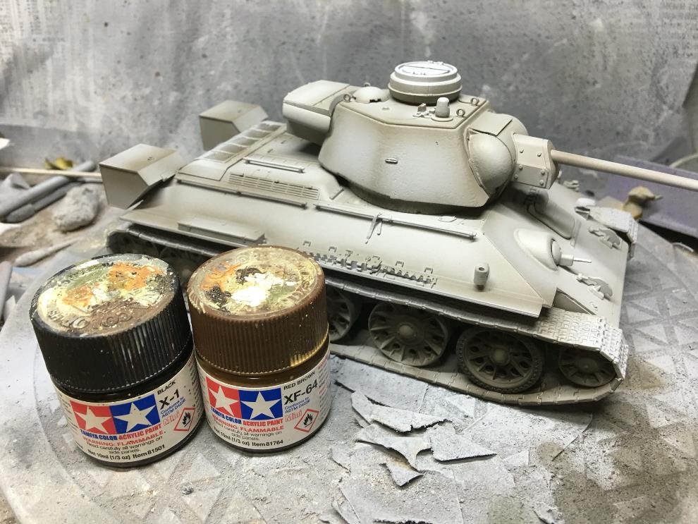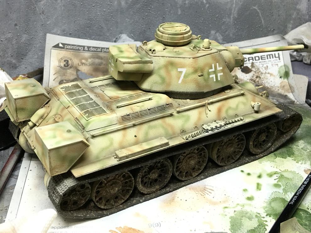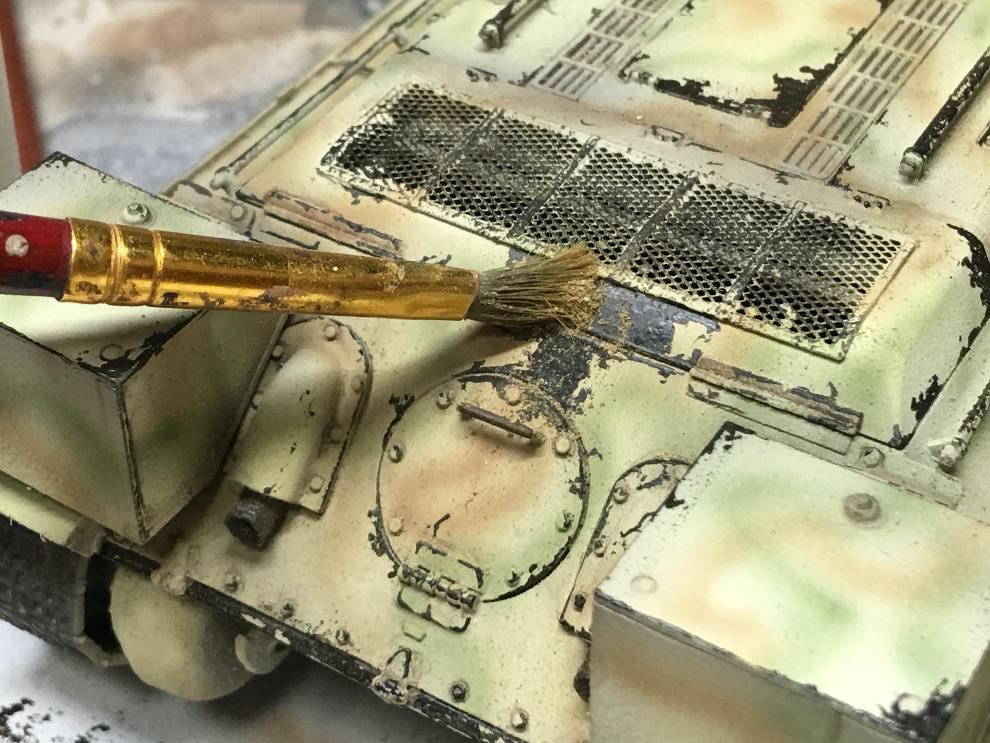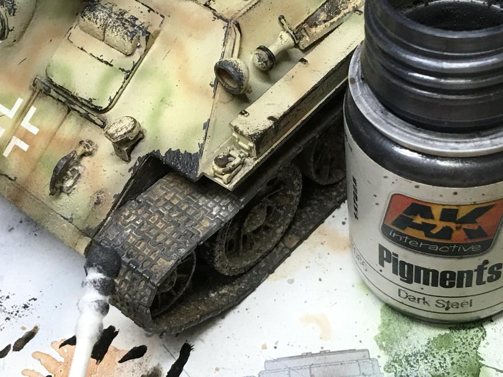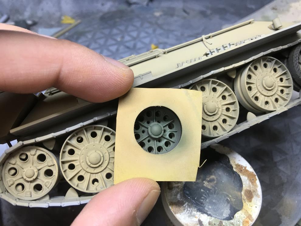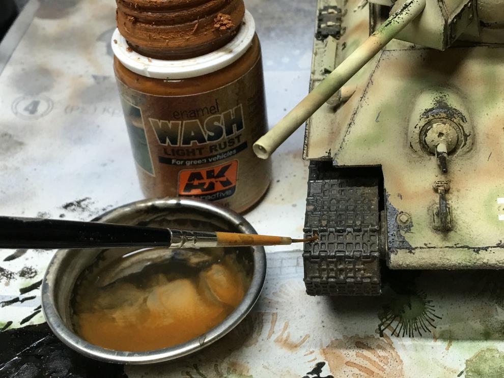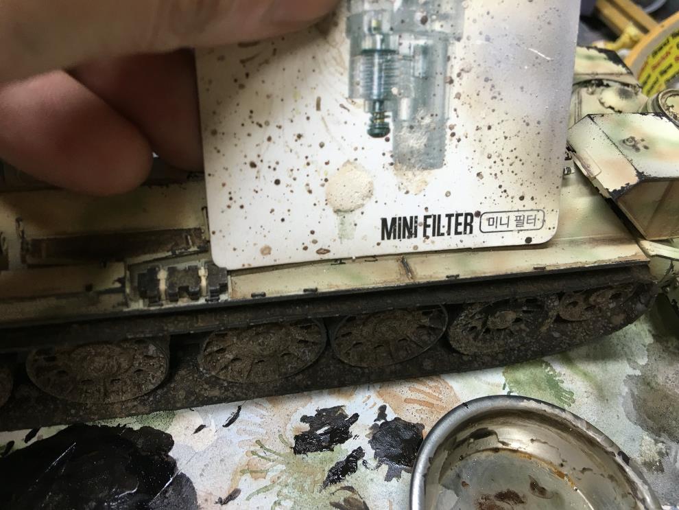 에나멜계 녹표현제를 묽게 희석해서 궤도, 차체 골진곳에 살짝씩 워싱해줍니다