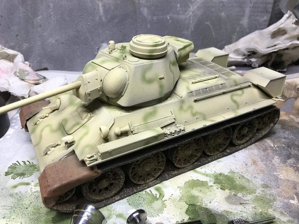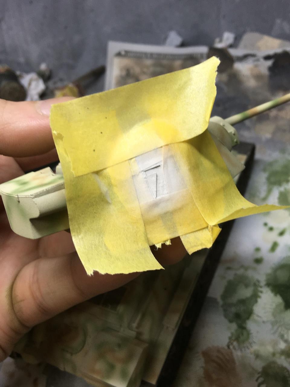 Deep green (타미야아크릴) 으로 1차 위장무늬를 프리핸드로 넣어줍니다, 에어브러시 압을 낮게 해서 인내심을 가지고 넣어줍니다