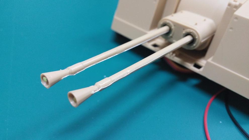 인두를 가져다가 댈때 피복이 위로 딸려올라가지 않습니다.) 를 포신의 측면 양쪽으로 +/- 이렇게 붙였습니다.