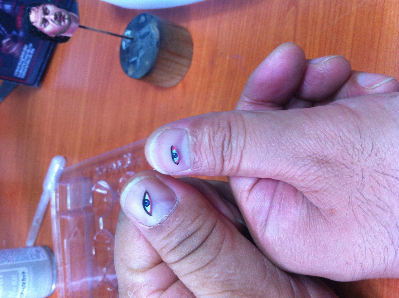 엄지손톱이 그려진 눈은 실제 눈을 그리기 전에 사전 연습한 것....