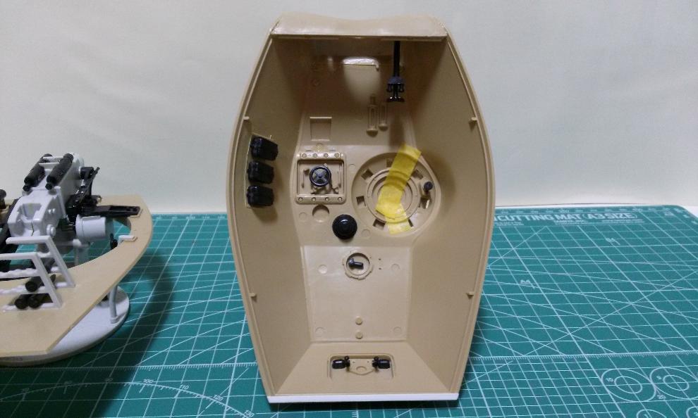 전투실 바닥부분에 있는 모터같은 장치는 손잡이와 발판같은게 묘사되어 있더군요. 역시 재미있는 부분입니다. 둥근 원통의 검정색 파츠는 아마도 소화기가 아닐까 합니다.