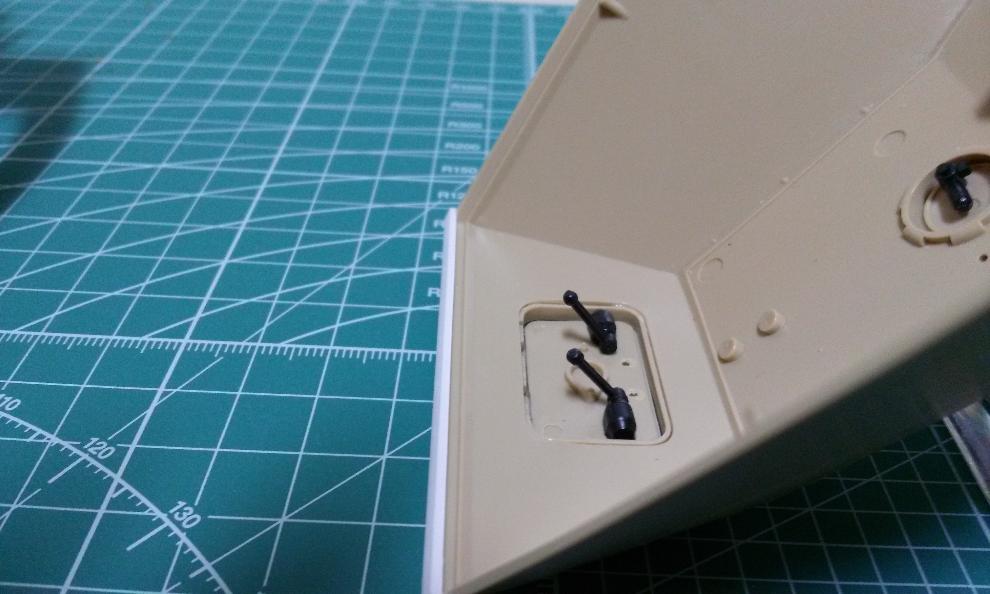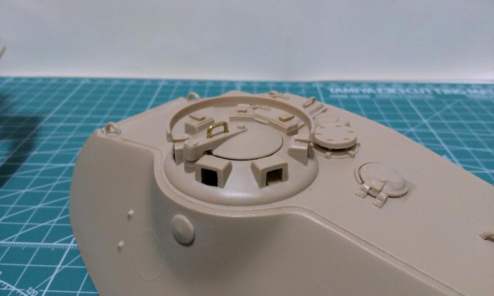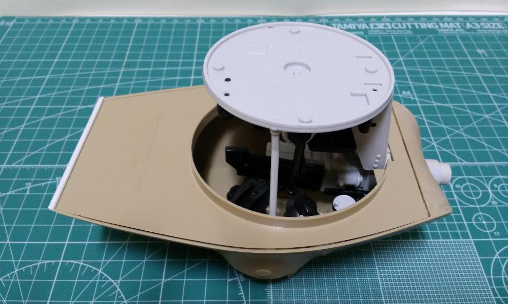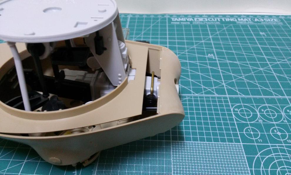 이제 포탑 상하부를 결합해 보겠습니다. 황동봉 부분이 딱 전방 아래 부분과 밀착이 되며, 하판은 앞뒤 약간의 유격이 있습니다.