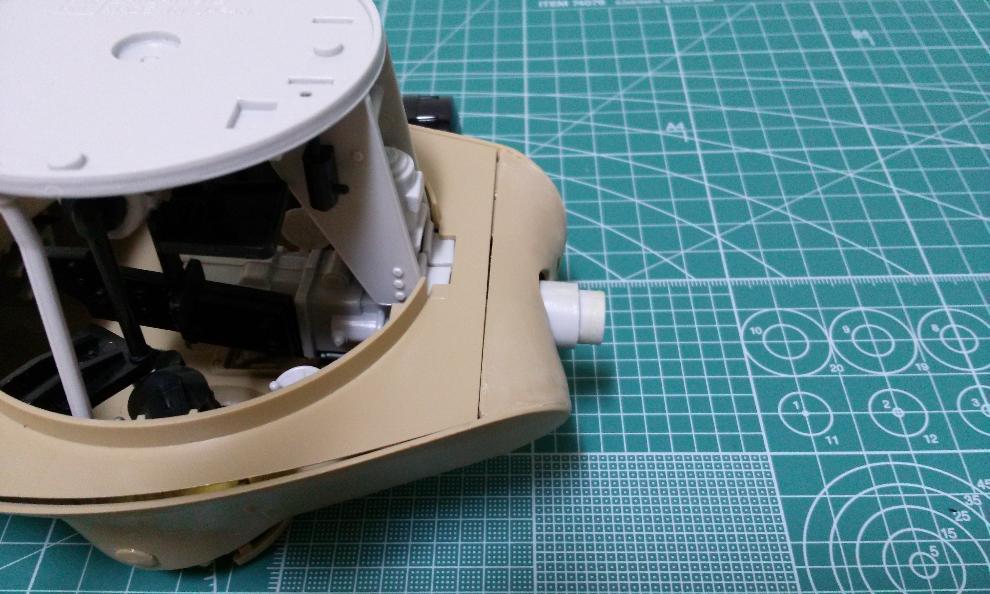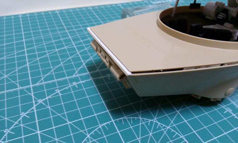 포탑 상판과 플라판의 결합으로 길게 홈이 생긴 모습입니다. 이건 걸림방식으로 볼 수 있겠군요. 접착은 무수지를 사용하였는데, 단단하게 접착이 된 것 같습니다.