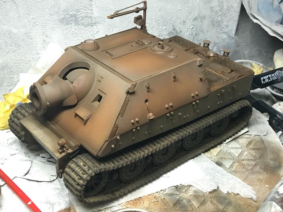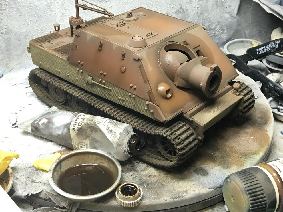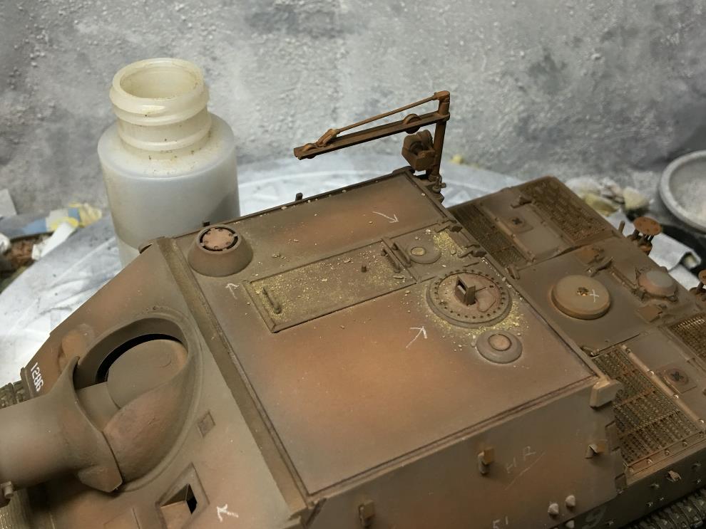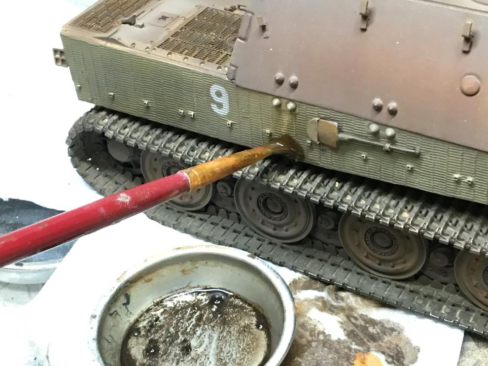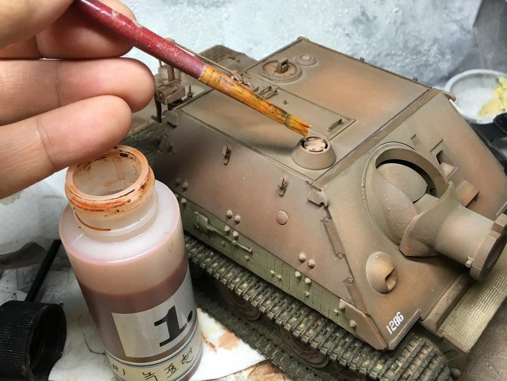 이 작업은 기본색이 아크릴일 경우 유화로 점을 찍고 바로 붓으로 웨더링 해주셔야 할겁니다