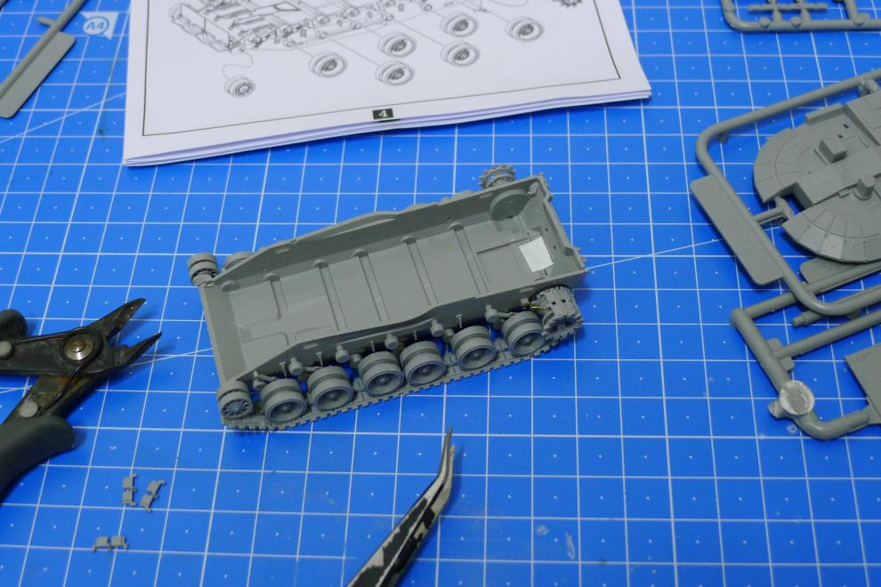 먼저 차체 하부를 조립하는데 한참 진행이 되고 나서 차체 부품이 뒤틀려있는 걸 확인했습니다....혹시나해서 다른 종류의 T-80킷을 4밧스확인해 보았는데 전부 뒤틀려 있네요. 큰 문제는 아닌데 미묘하게 부품이 안 맞게 되는 원인제공을 했습니다. 결국 손으로 뒤틀린 반대방향으로 다시 뒤틀어 진행했습니다.....그리고 차체 하부의 휠이나 암등이 다 시원하게 맞질 않습니다.......