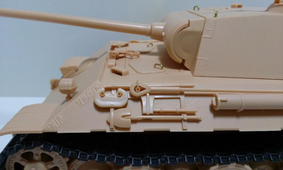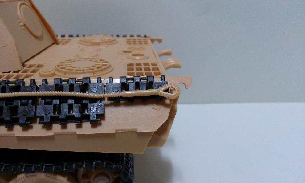 중간의 포신 청소도구통은 원래 뒤쪽으로 치우처 있어서 고정핀을 잘라낸 뒤 앞쪽으로 부착을 해주었습니다. 그러니 첫번째 예비궤도가 부착가능하더군요. 가급적이면 원 재품의 형태와 설명서에 충실하려는 주의인데, 도구통의 경우는 부득이 손을 봐주었습니다.