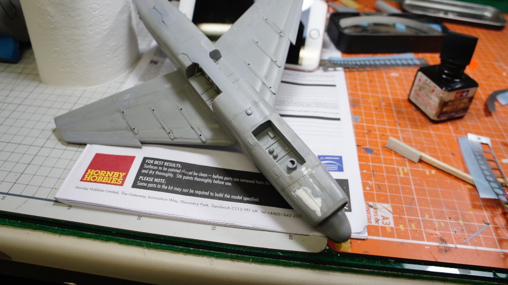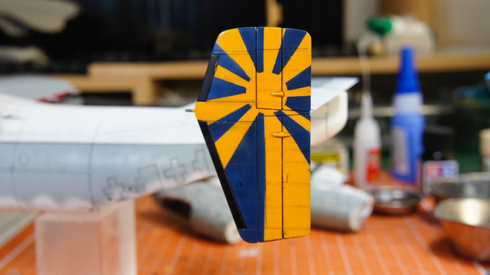 인시그니아 블루라고 지적해주신 이상민님의 조언으로 검은색으로 칠했던 수직미익을 다시 작업하고 있습니다.