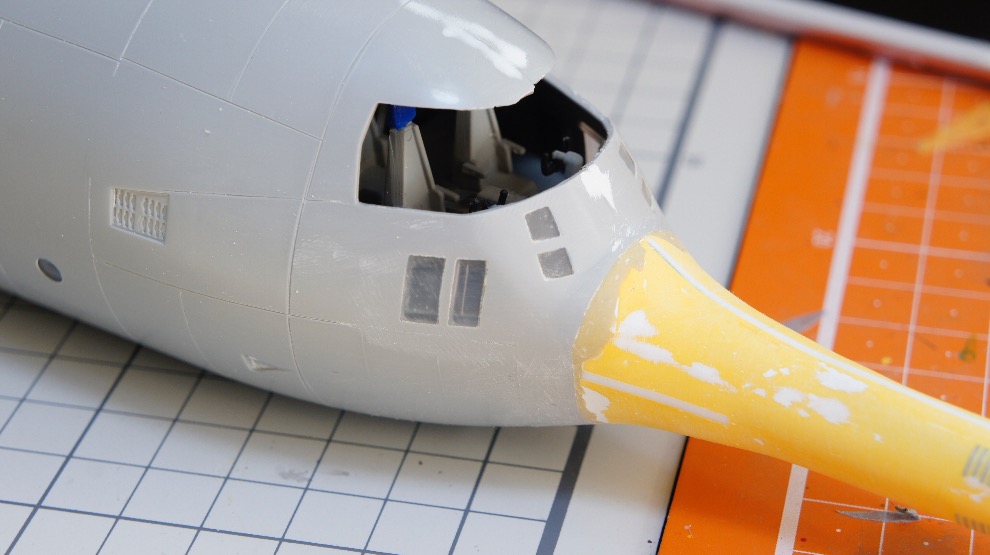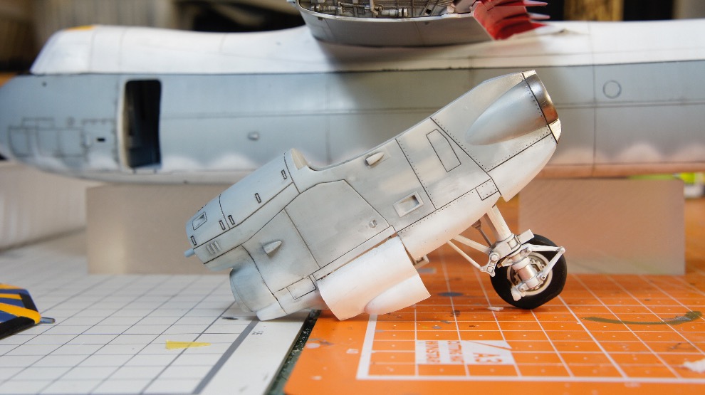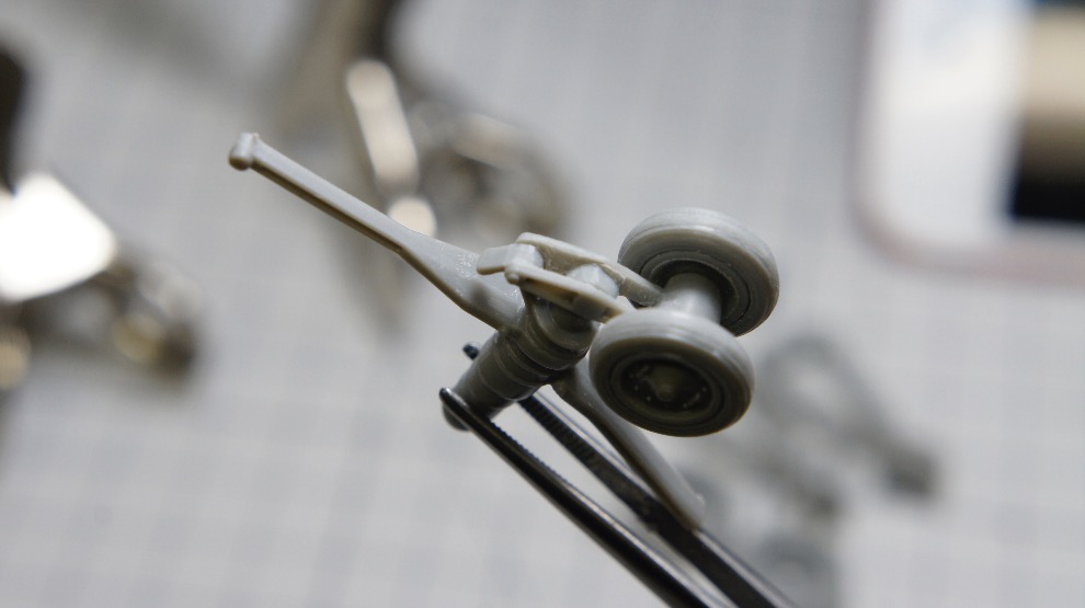 아트나이프와 핀바이스로 구멍뚫고 깎아내서 노즈기어 링크부분을 그럴듯하게 만들어줍니다.