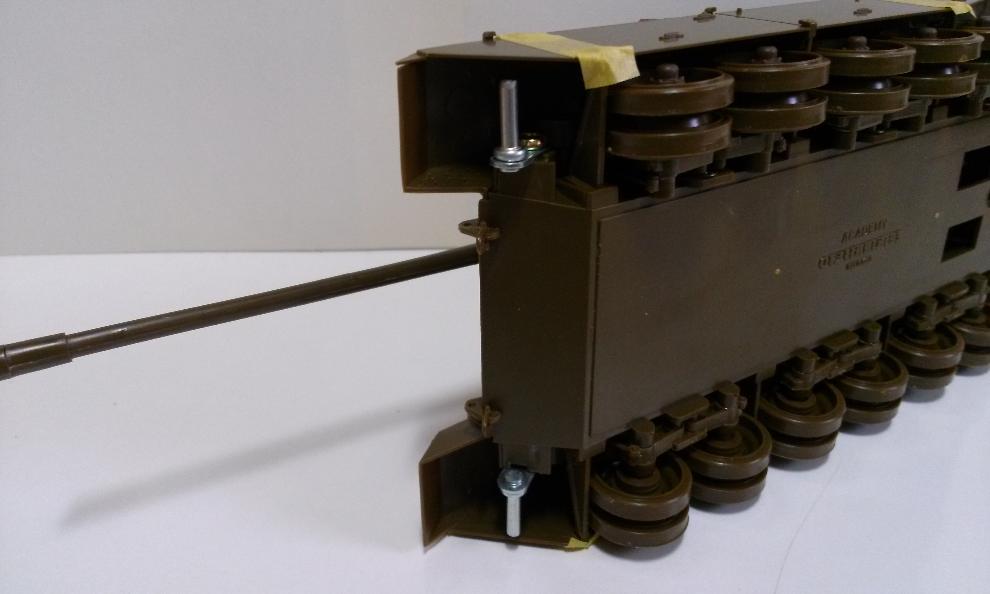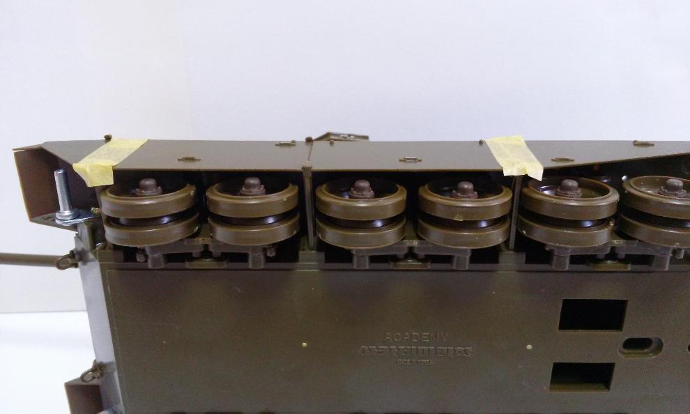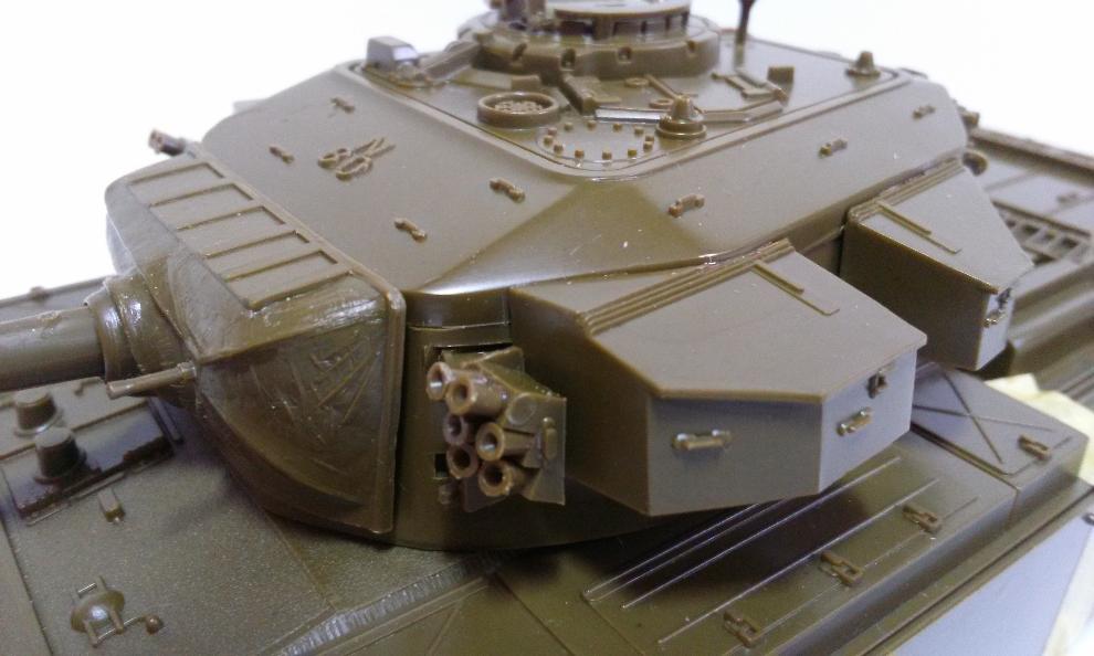 사진의 포탑 좌측 앞부분의 공구통은 설명서대로 부착하면 측면 헤치 일부를 덮는 문제가 있습니다. 예전에도 그런 실수가 있었고, 이전에 구득한 사막색 센츄리온도 그런 실수가 있더군요.