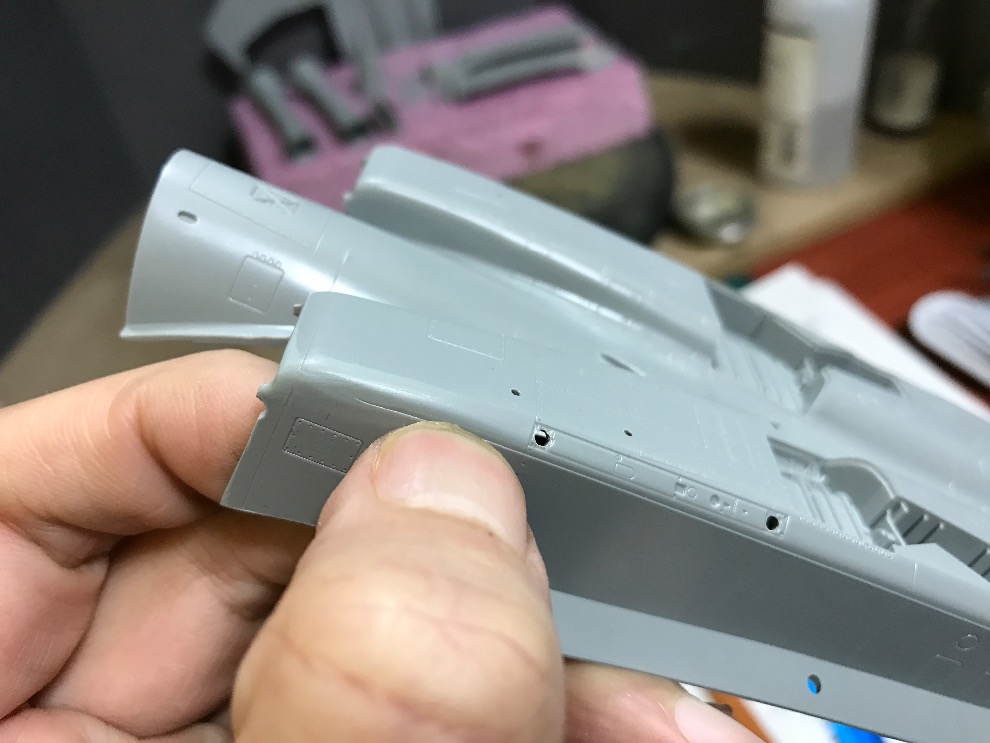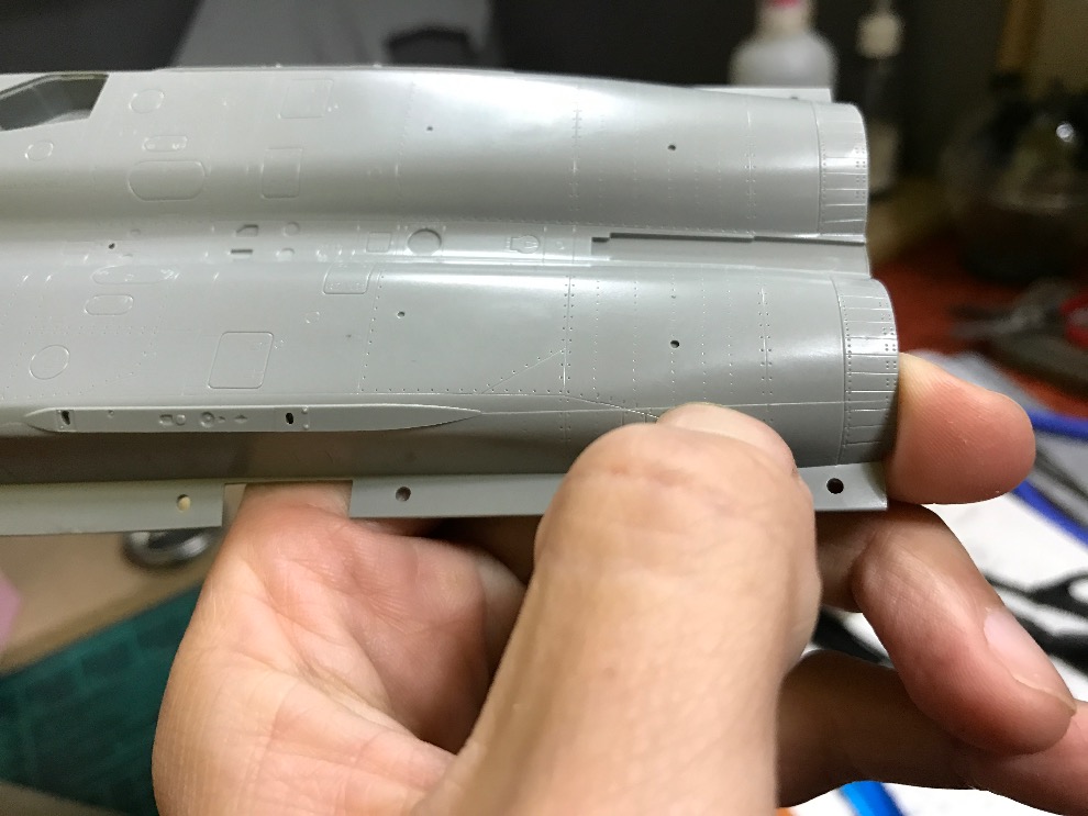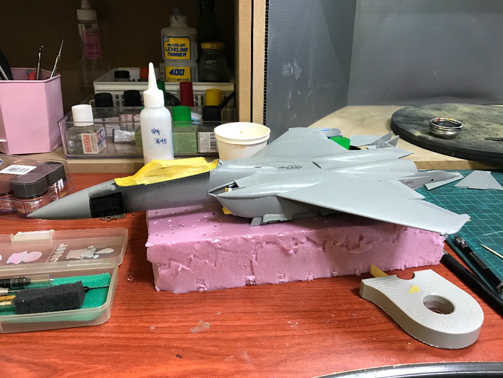 동체 조립과 접합선들 정리하고 캐노피 마스킹 합니다