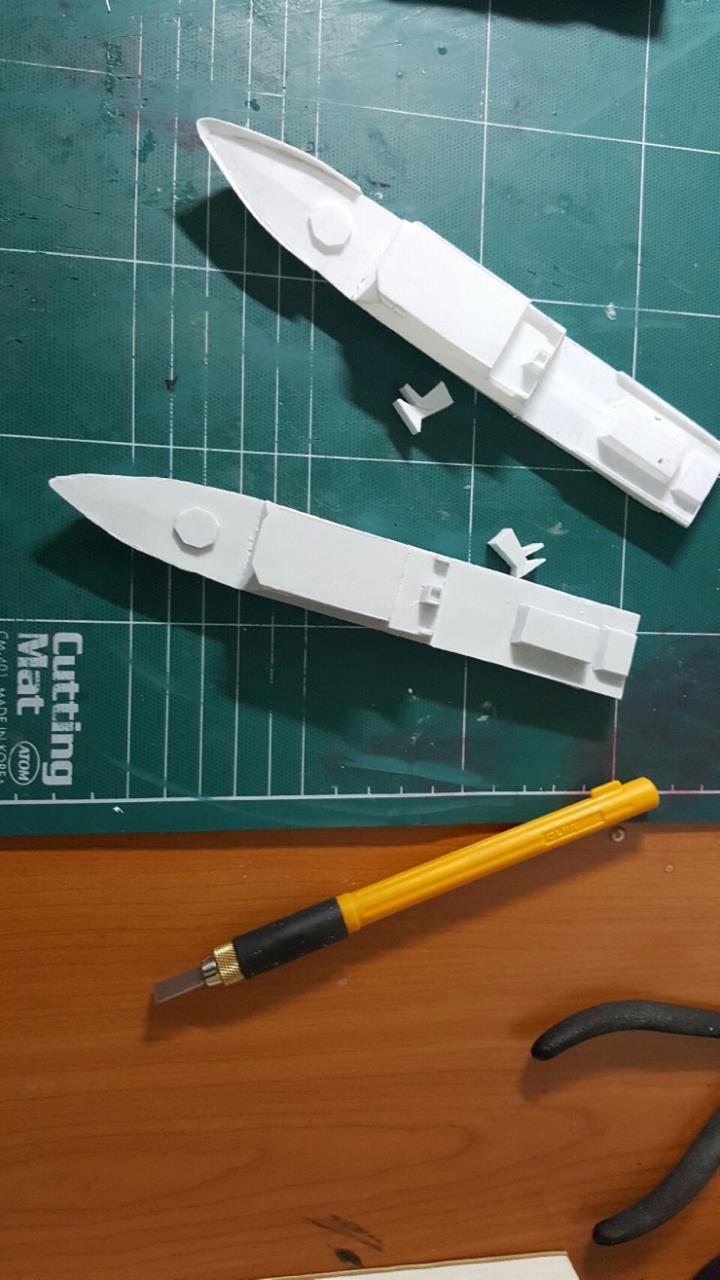 2번함 이후 적용된는 각진 포탑과 40mm 노봉은 스컬피를 이용해서 제작했습니다. 대충...ㅎㅎㅎ