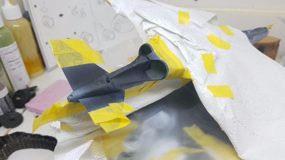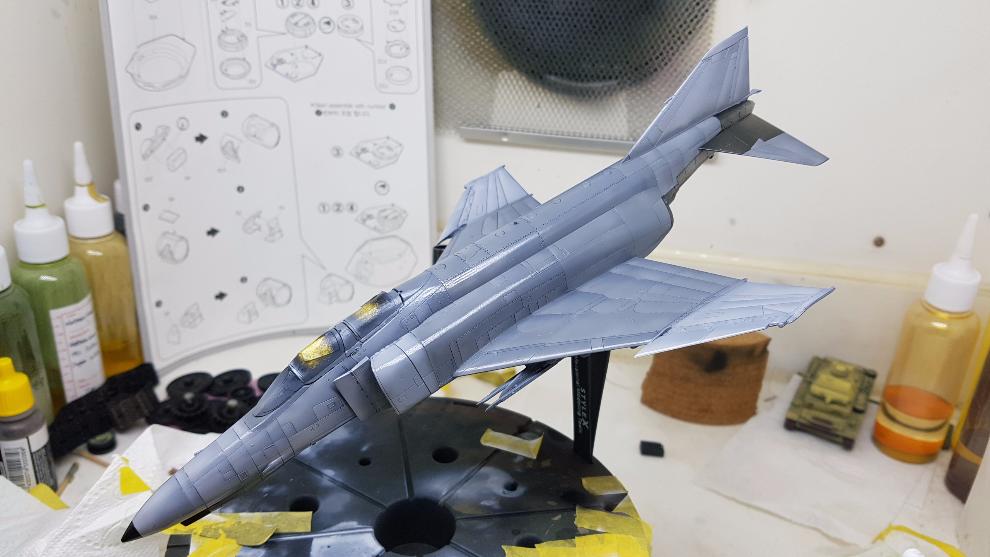 좌측 날개는 도장 테스트를 위해 미리 미디엄 그레이를 뿌린상태입니다.