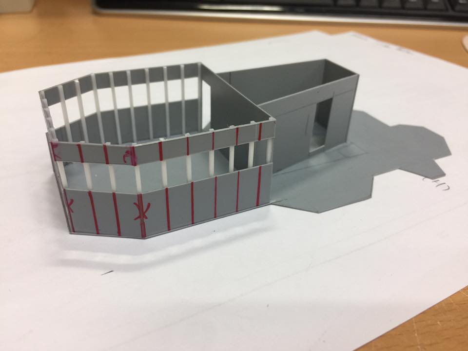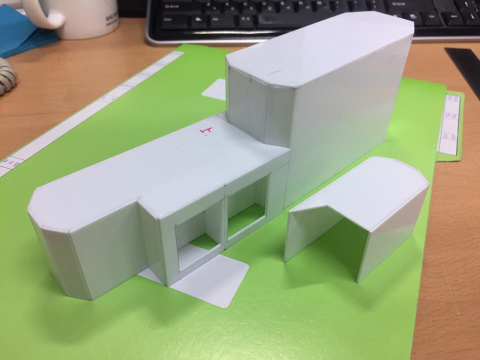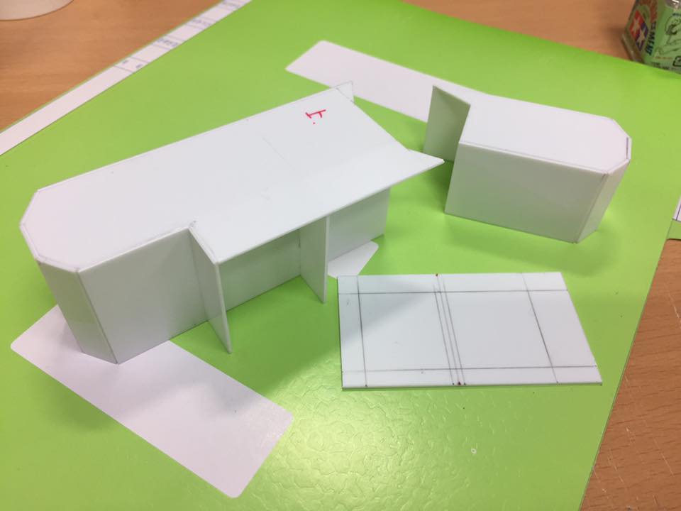 먼저 0.5mm 프라판으로 나침함교 부분을 먼저 짭니다. 자 대고 샤프로 그리고 후딱 재단.