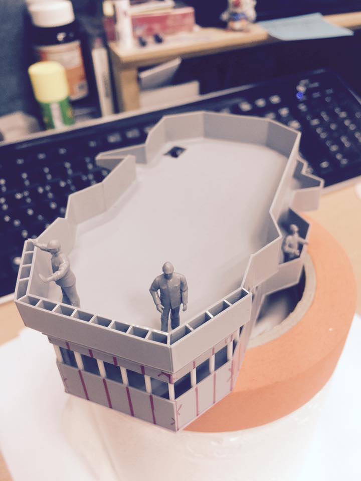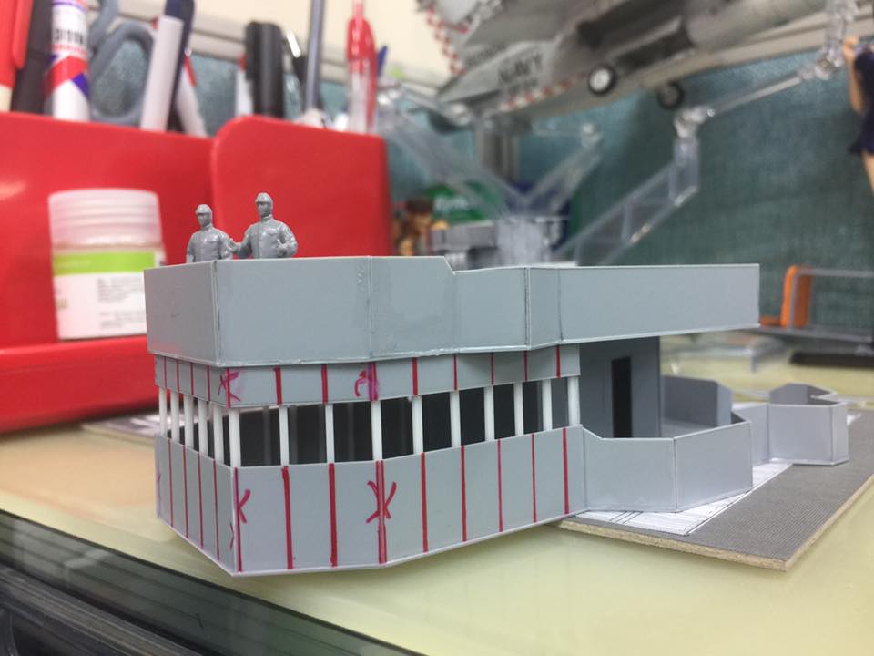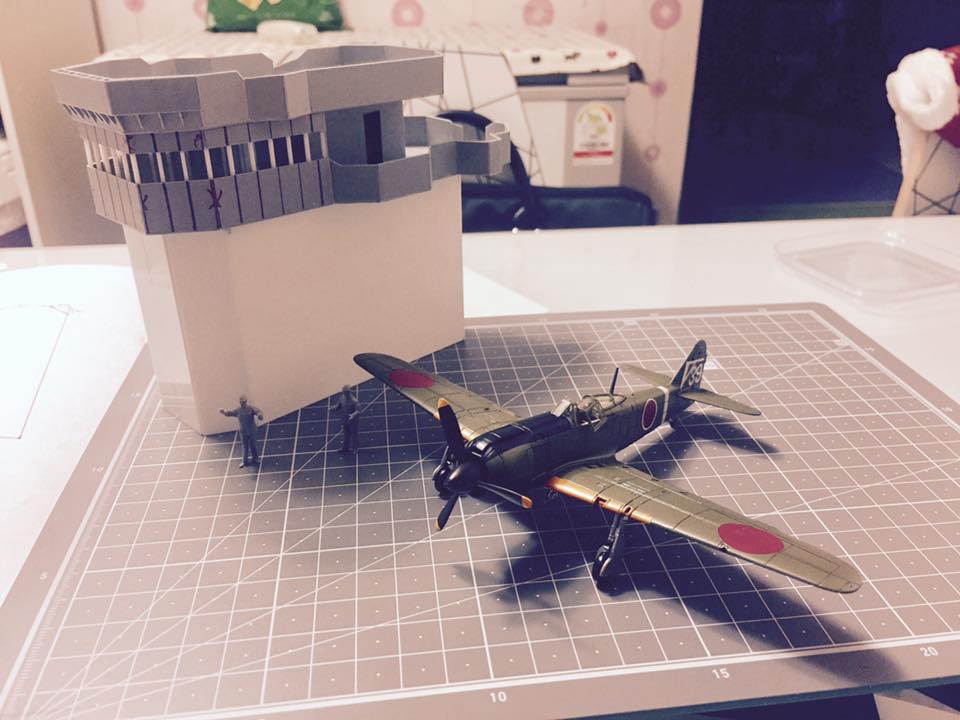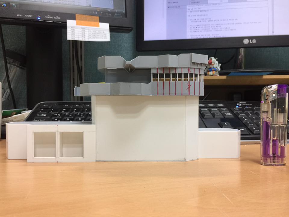 원래 의도는 폭이 20cm 정도로 제한된 선반이니까 폭도 좁고 크기 자체가 작은 일본 항공모함 아카기 같은 작은 소형의 함교 형태였는데, 어찌어찌하다보니 운류-카츠라기급같은 대전 후기의 중형항모 함교같은 모양이 되어버려(...) 어차피 가상의 함교인데 재밋겠다 싶은건 다 해보자라는 의도로 시작했습니다
