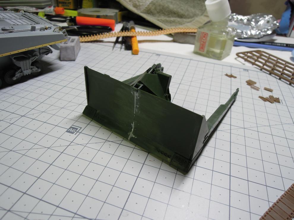 아카데미 도저삽날의 폭이 5mm정도 넓어 적당한 크기로 잘라 내고 순접과 퍼티로 마무리했습니다.