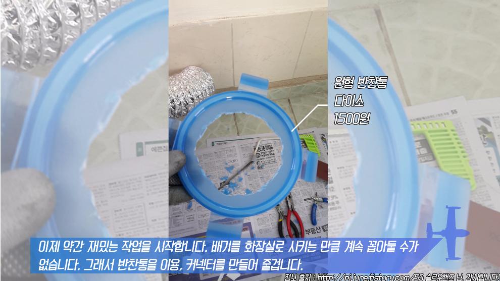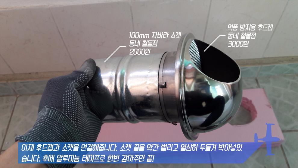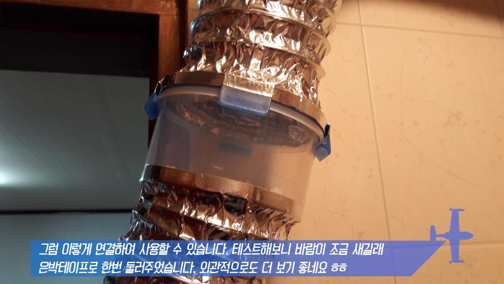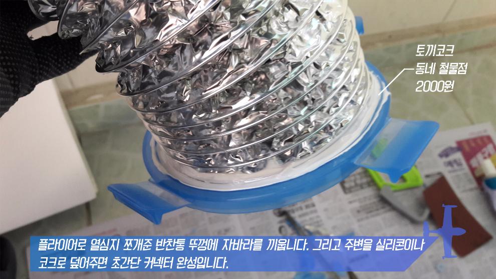 그리고 뚜껑 하나, 몸체 하나를 구멍을 뚫어 양쪽 자바라에 연결 해 줍니다.