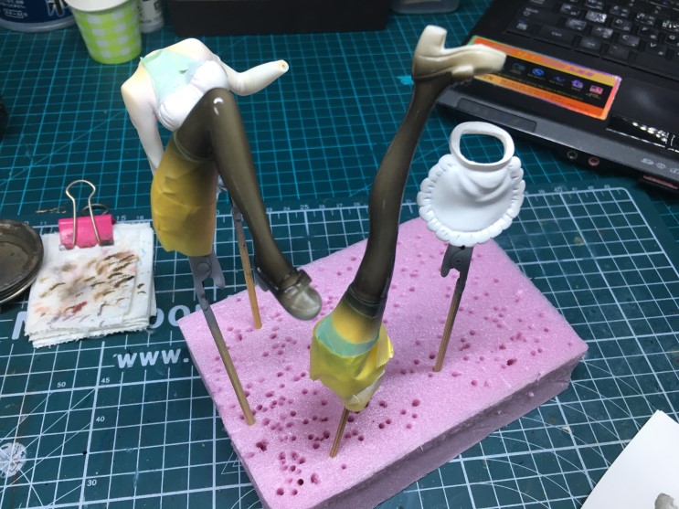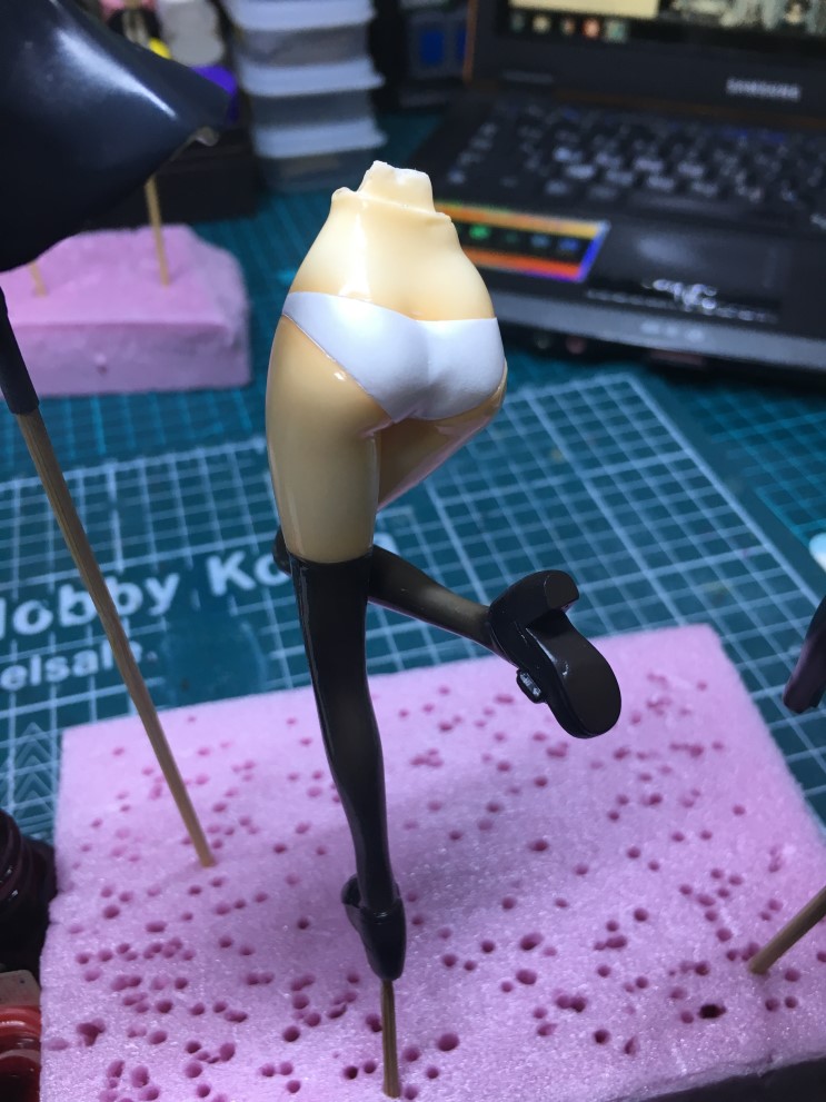 살색을 칠한 뒤, 마스킹을 해서 스타킹을 표현해줍니다.