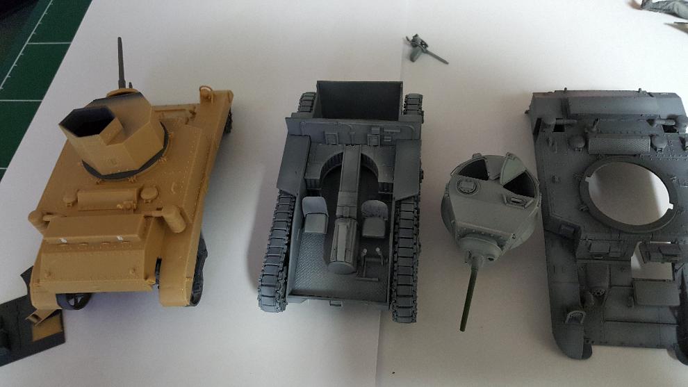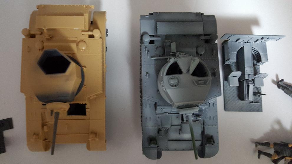 1/35 Stuart 경전차 두대 동시 작업 입니다. 미군용 은 5년전 가조 후 방치 하여 다수의 부품을 잃어 버려 영국군 버젼 구매 후 참고 하여 만들어 주었습니다. ( 앞 견인 고리, 의자 등받이, 조정석 헷치 하판, 뒤 트랙 머드가드, 포탑 손잡이 다수) 등등 자잘한 부품 다수 분실 입니다. 조립은 한방에..... 포신이 삐뚤빼뚤 마음에 들지 않습니다.....