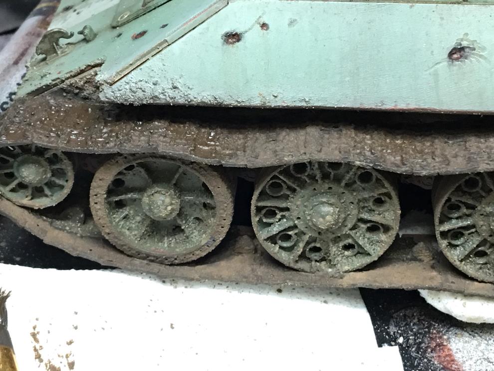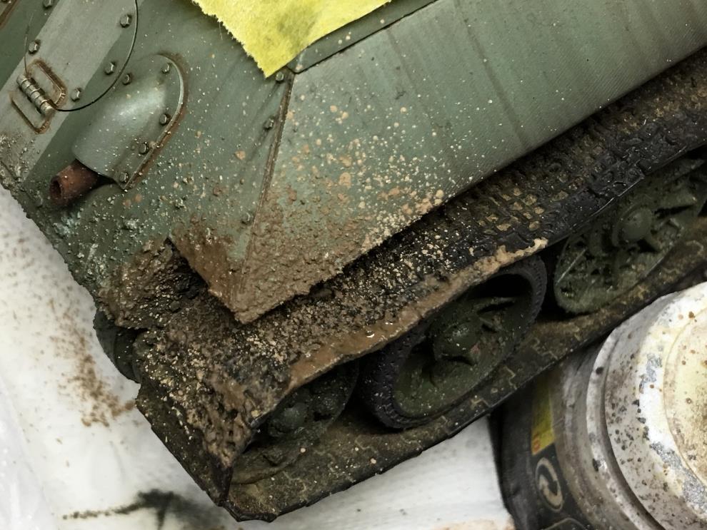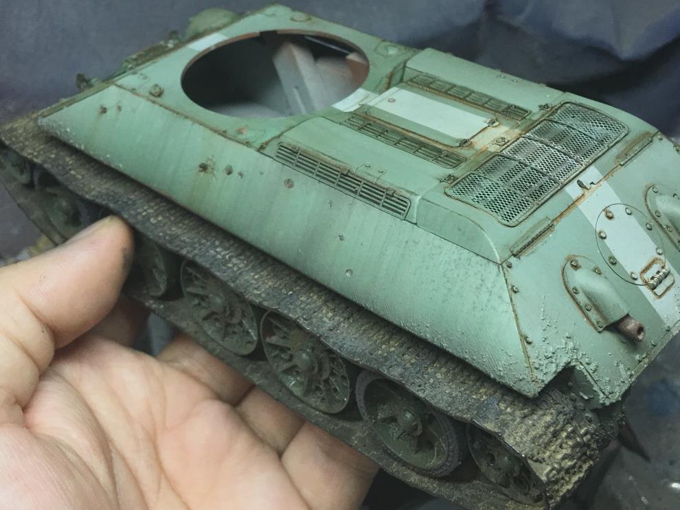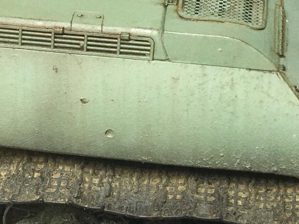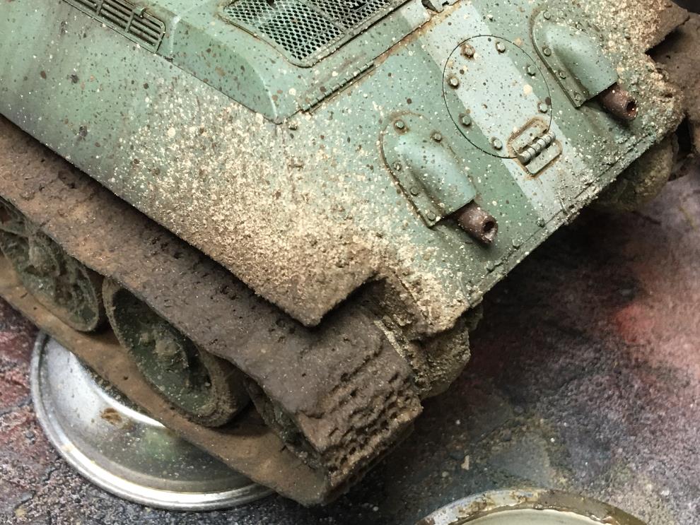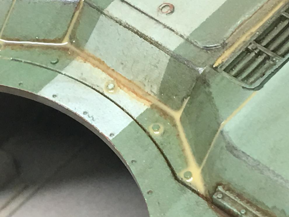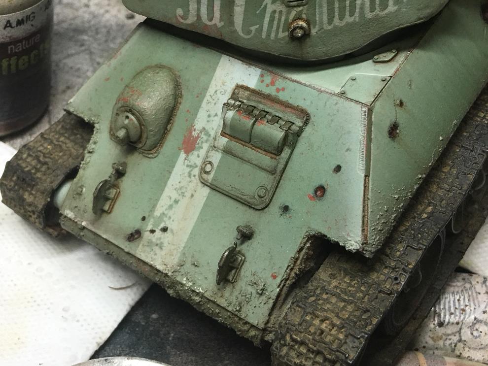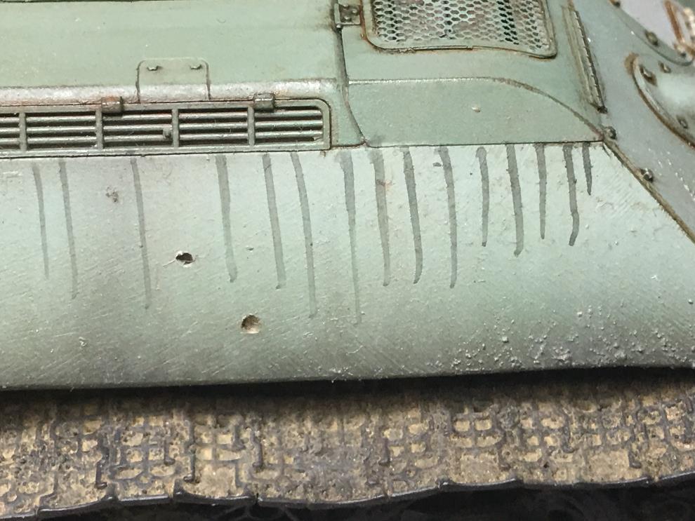 T-34 측면에 있는 오일배기구는 유화물감으로 그려준 뒤, 살살 바깥쪽으로 약하게 블랜딩해줍니다