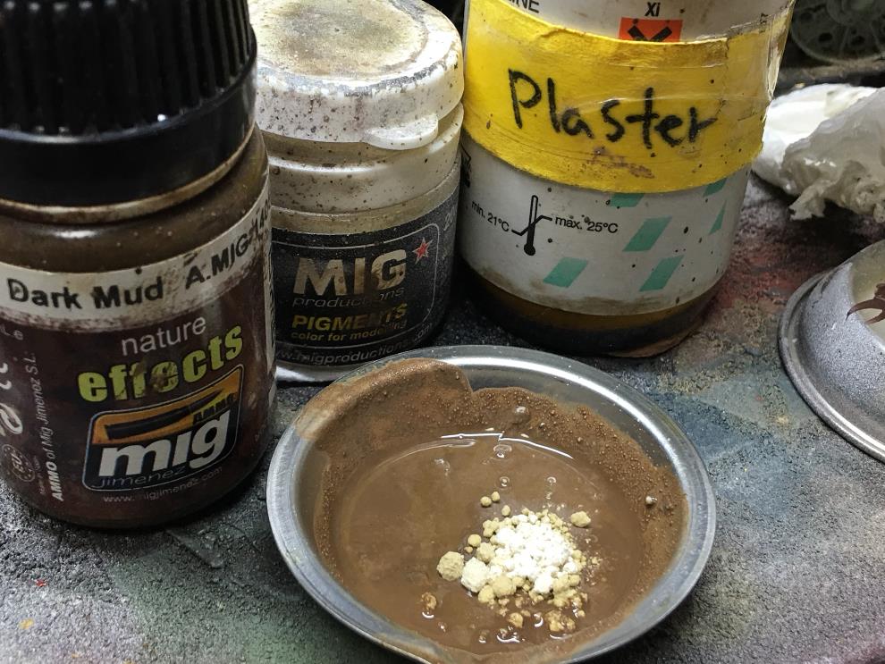 석고가루, 다크머드, 밝은색 피그먼트를 섞어서