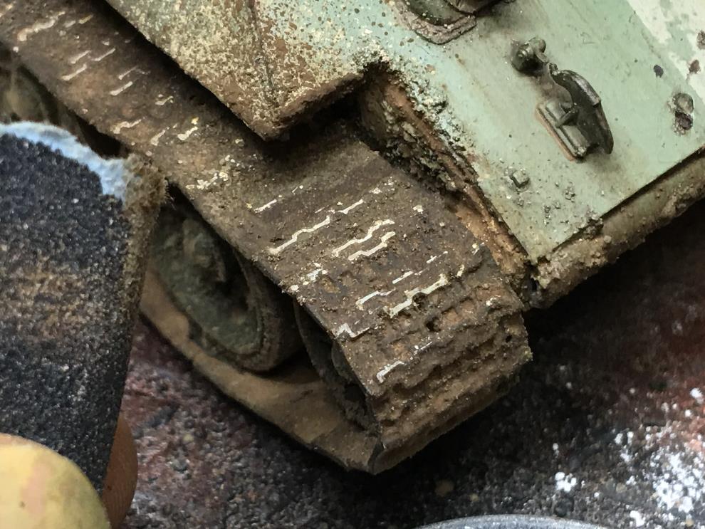 궤도는 인젝션이지만 갈아줍니다 그 위에 피그먼트 건메탈로 슥슥 닦아내어 금속질감을 줍니다