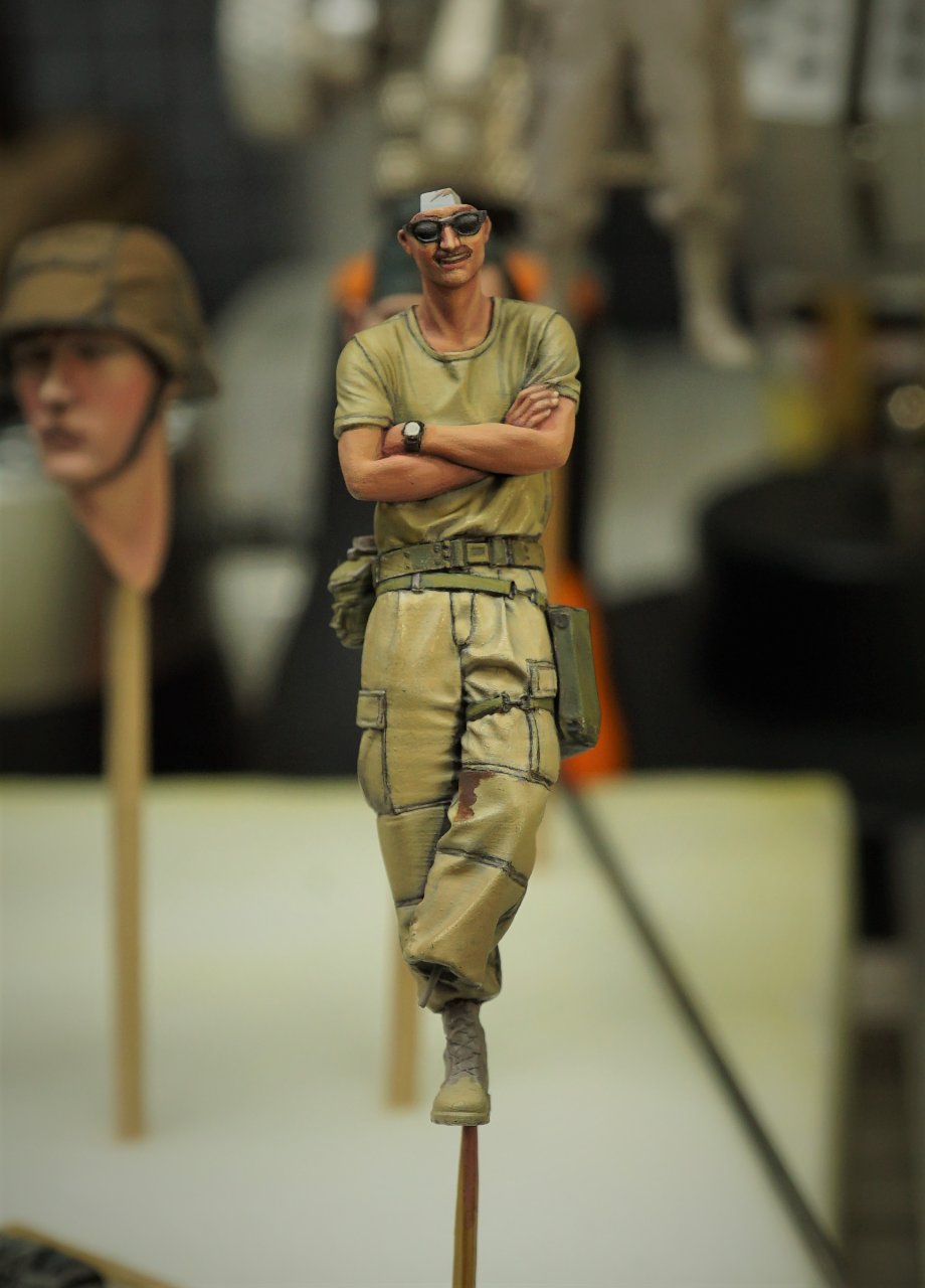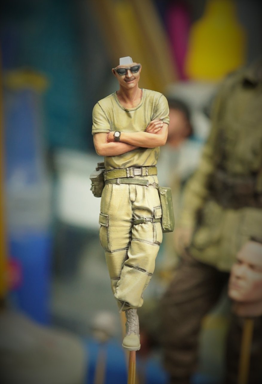 올해 하비페어에서 구하게 된 1/35 US Army Driver at rest Gult War 1991 인형입니다. 1차 걸프전을 배경으로 만들어진 제품이며, 군복은 구형 사막 6색 위장 무늬입니다. 위장 무늬 및 장구류 색칠만 남아 있는 상태에서 확인 차 사진을 찍어 봤습니다. 완성이 되면 갤러리에 올려 보겠습니다.