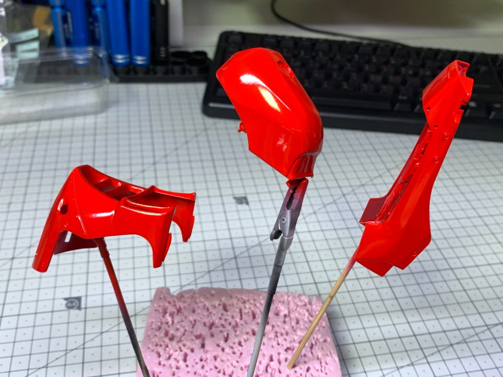 클리어부품도 붉은색, 오렌지색을 칠해주었습니다.