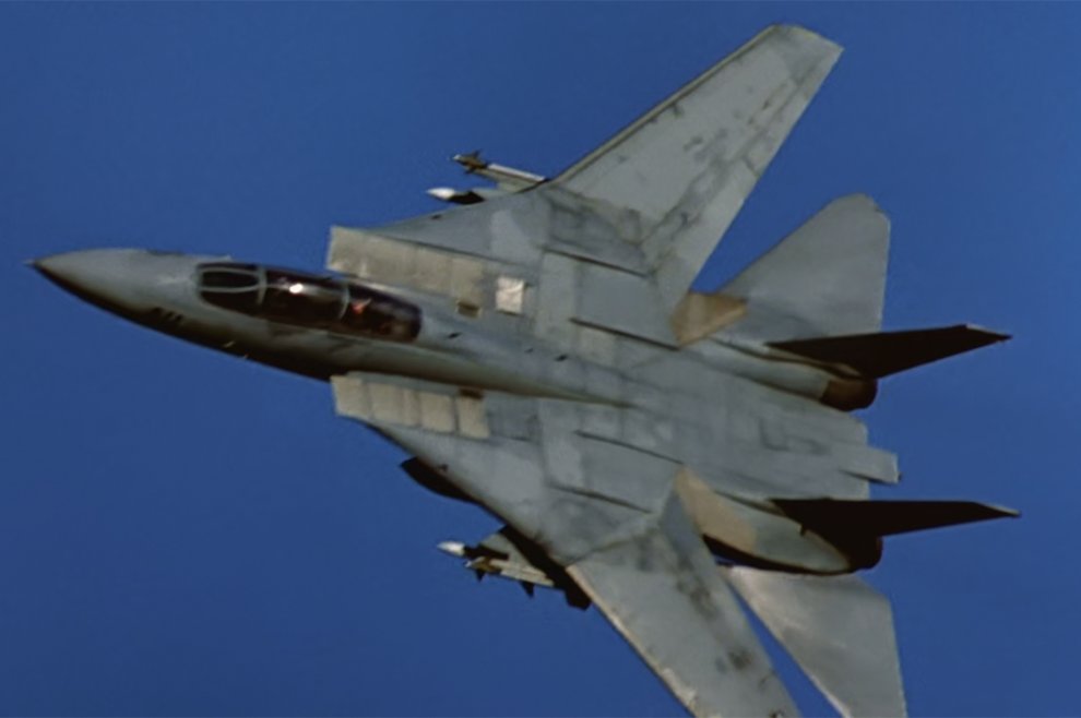 영화에 등장하는 F-14 기체는 일반적인 F-14와 다르게 안티슬립 색상이라든지 차이나는 부분이 많고 도색이 벗겨진 부분 등 흥미로운 부분이 많습니다.