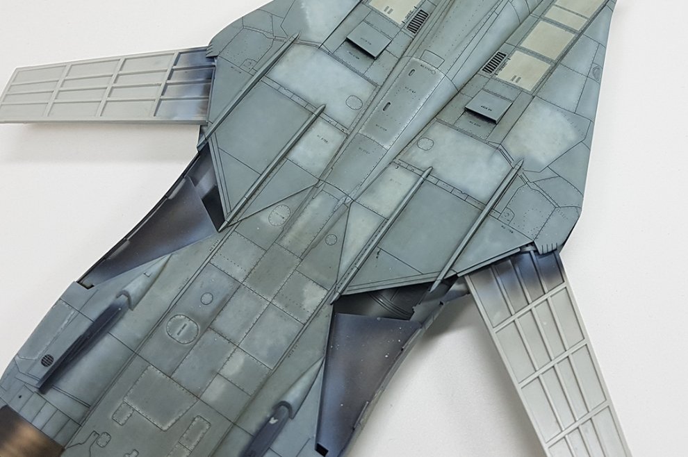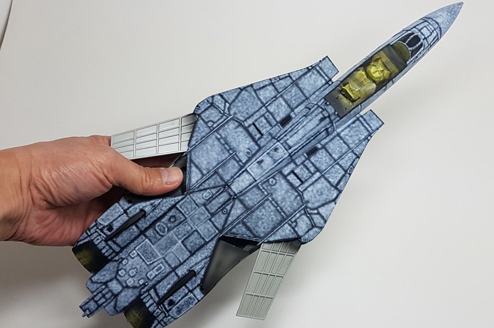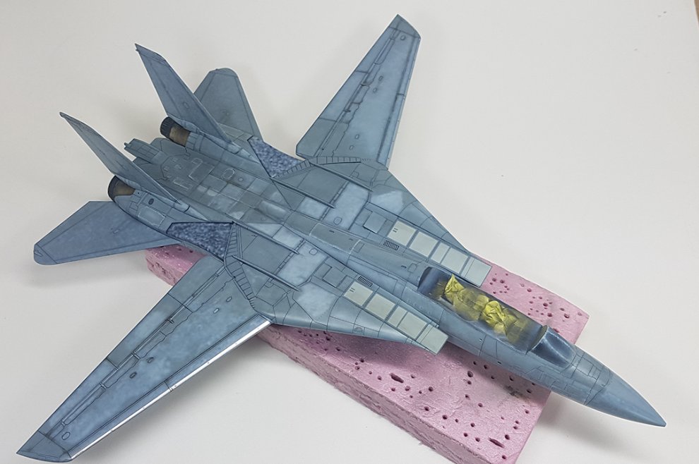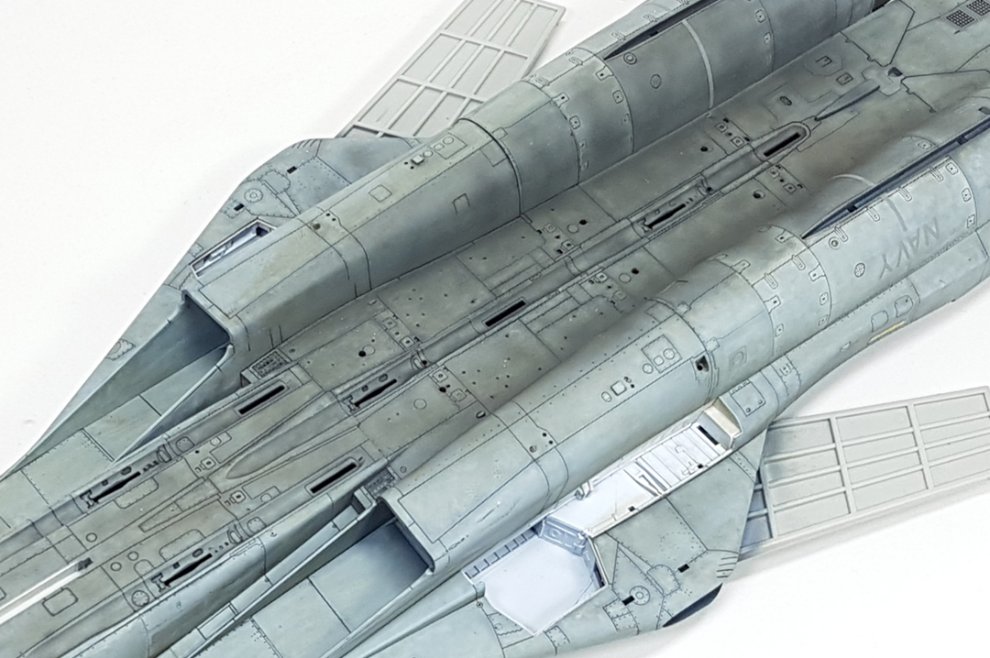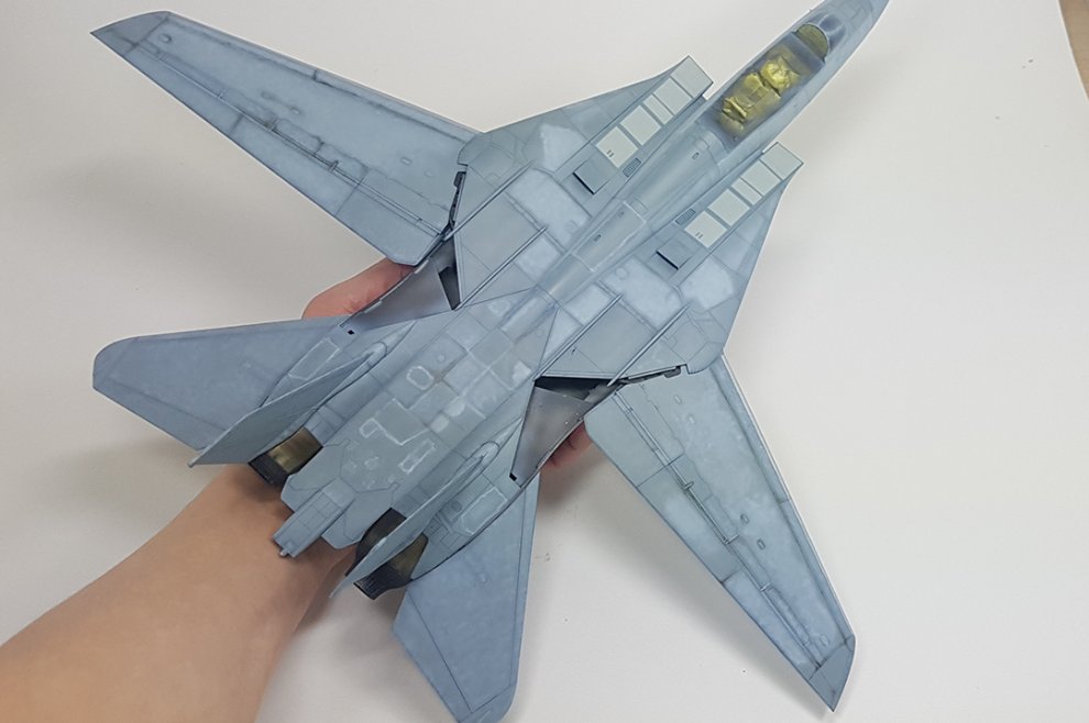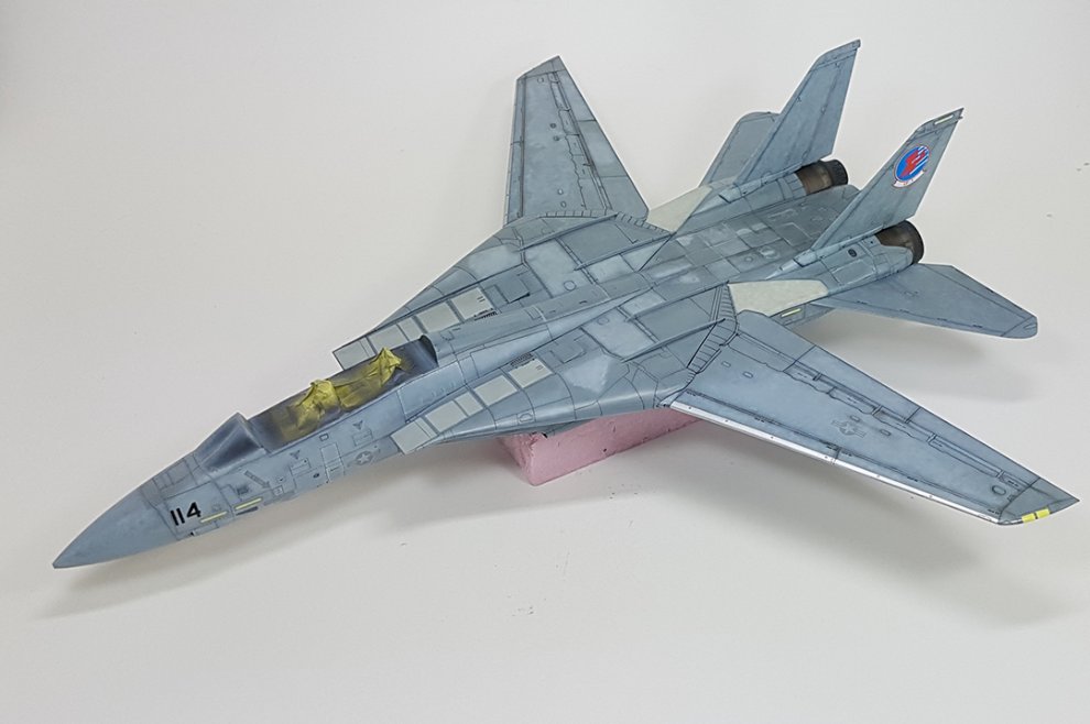 타미야의 F-14A와 Jeight Design (DEF. Model)의 별매 데칼을 사용하여 영화 Top gun에 나오는 메버릭의 기체를 만들고 있습니다.