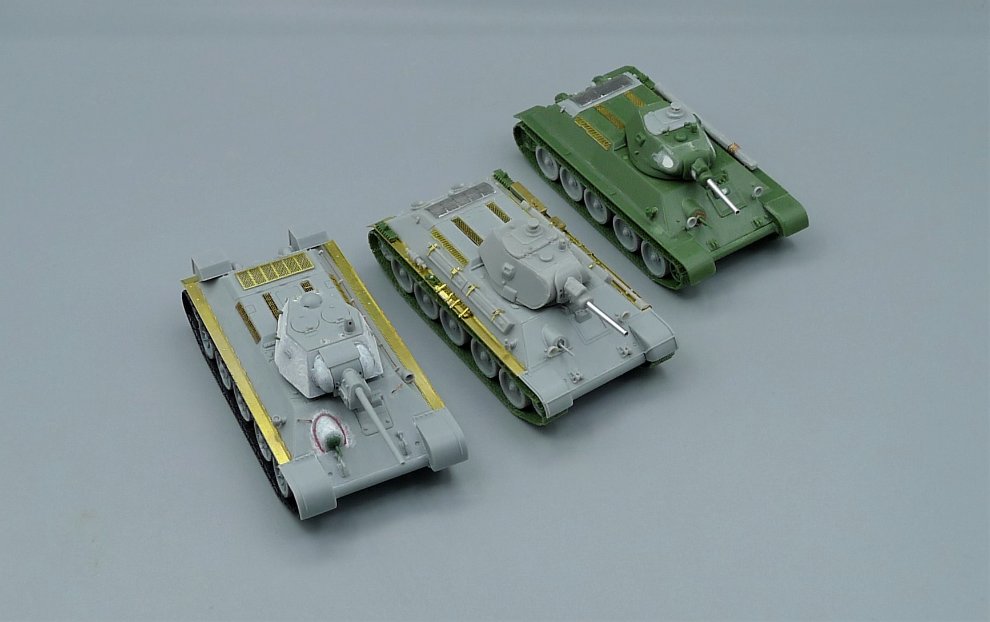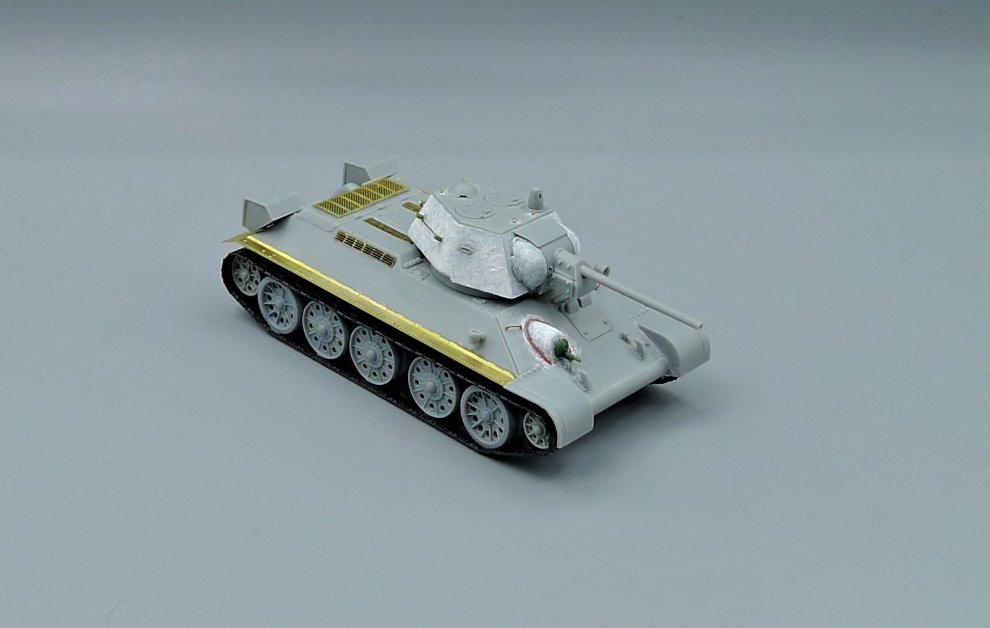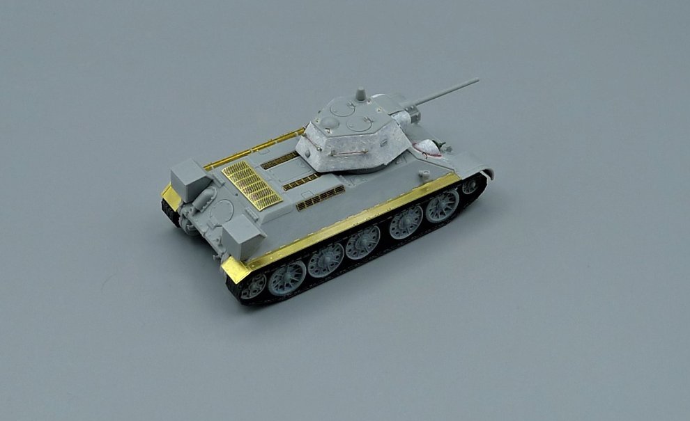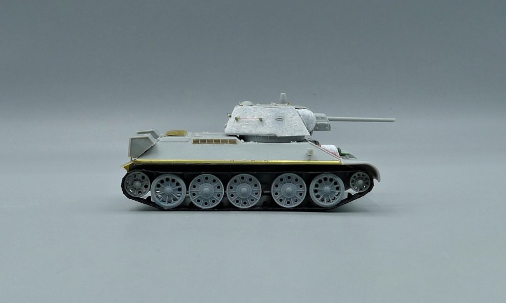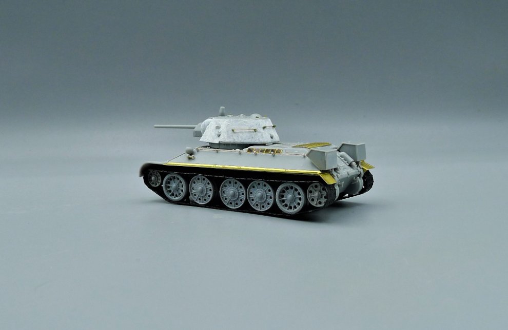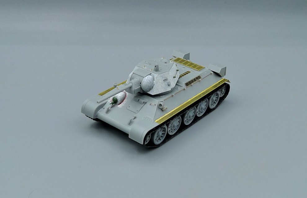 72스케일 T-34/76 1942년형을 조립해 보았습니다. 드래곤의 T-34 42년형인데 디테일 몰드가 너무 오버표현되어 있고 연질트랙이라 즈베즈다 휠과 궤도, 보이져사와 하울러사의 에칭 0.18mm 에나멜선으로 장비걸이를 만들어주었습니다. 악세서리는 아직 미부착 상태이고 약간의 질감표현만 해 주었습니다.