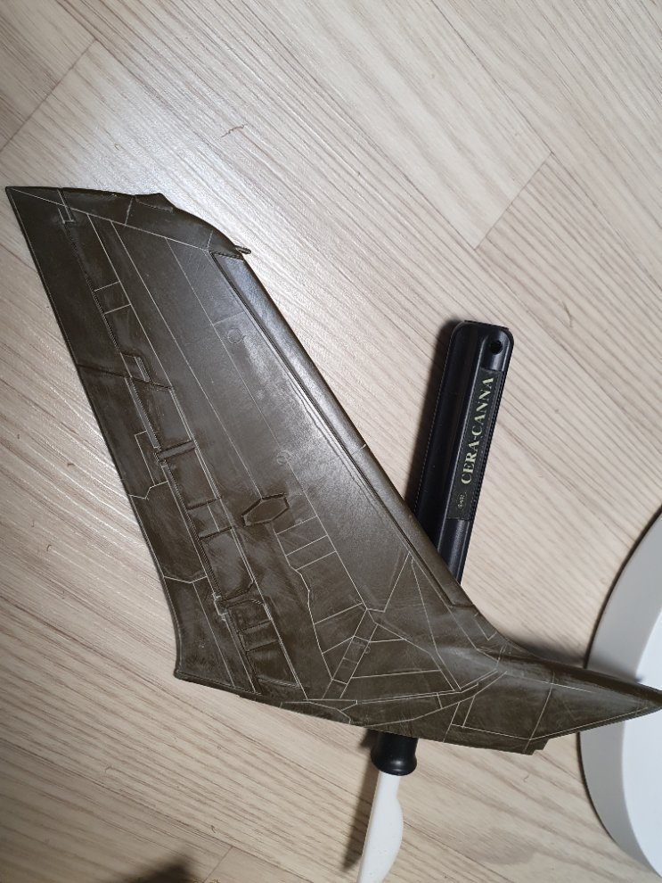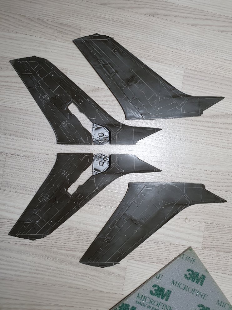 처음부터 파낼 선이 많은 동체나 주익부터 파기 시작하면 작업량에 질려 도중에 포기하는 경우가 생기므로 크기가 작고 선이 몇 개 안되는 수평 꼬리날개 부터 파기 시작하면 성취감도 들고 재미도 붙게 됩니다.