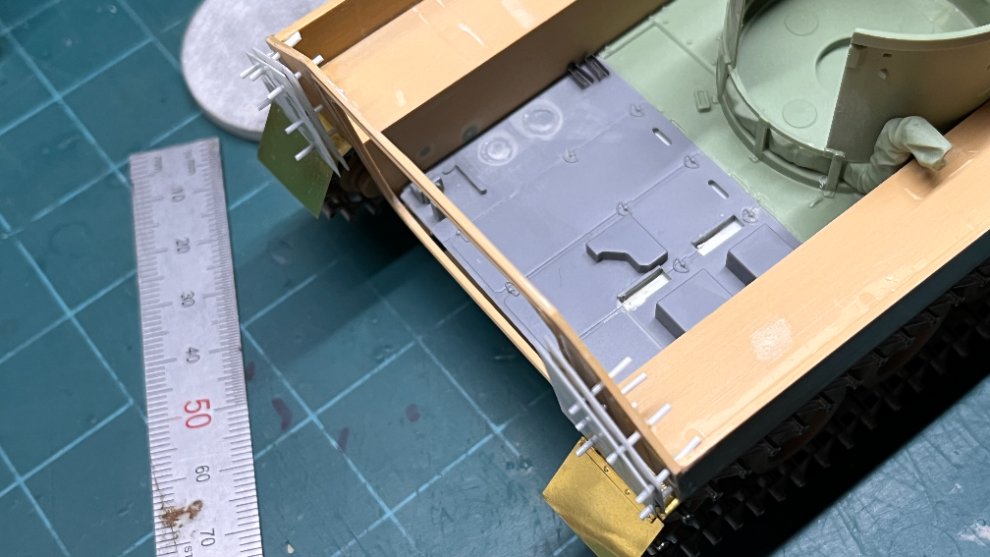 사진 가운데 하단에 보이는 큰 구멍은 0.5mm 프라판으로 메꿔서 차체의 형태를 만들어주려고 합니다. 저 위에도 에칭부품이 하나 올라가야하죠.