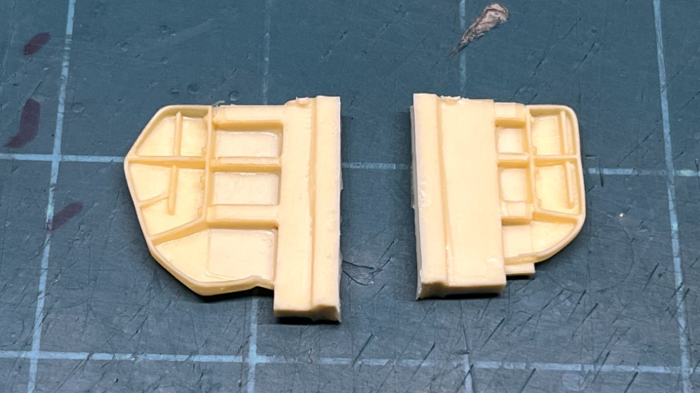 Tamiya와 아카데미과학의 M2A2에는 어수룩하게 생긴 부품을 사진의 좌측부품에 해당하는 것만 넣어주었는데, 적재함의 스페이서를 제대로 만들고 나면 실물에서 비대칭 형태인 이 구조물(자세히는 모르겠지만 아마도 아이들러휠로부터 진흙이 차내로 튀지 않는 용도가 아닐까 생각합니다)을 붙여줍니다. 이걸 아주 오랫동안 붙여보고 싶었습니다 ^^