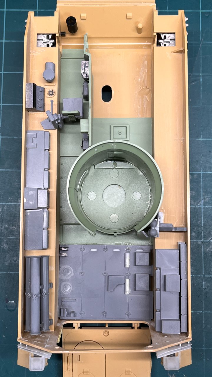 실내는 해치를 열어놓아도 대부분 잘 보이지 않으므로, 가급적 Tamiya의 부품을 써서 OOTB로 만들어주었습니다. 사실 이 사진을 보시면 아시겠지만, 작년에 M2A0를 만들 때 조금 더 디테일을 살려보려고 MENG의 M3A3 인테리어세트와 부품을 섞어서 만든 부분도 있습니다. 덕분에 포탑 안쪽의 인테리어를 만들어줄 수 있었지요.