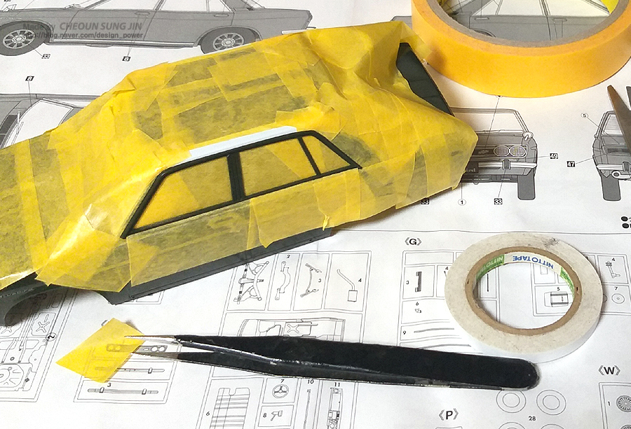 도색시 각 윈도우 프레임은 평면이 아니라 앝게 튀어 나와있어서