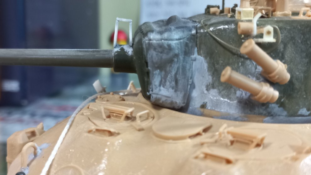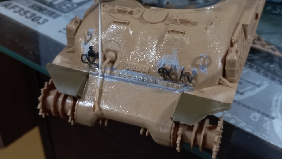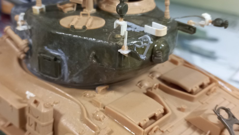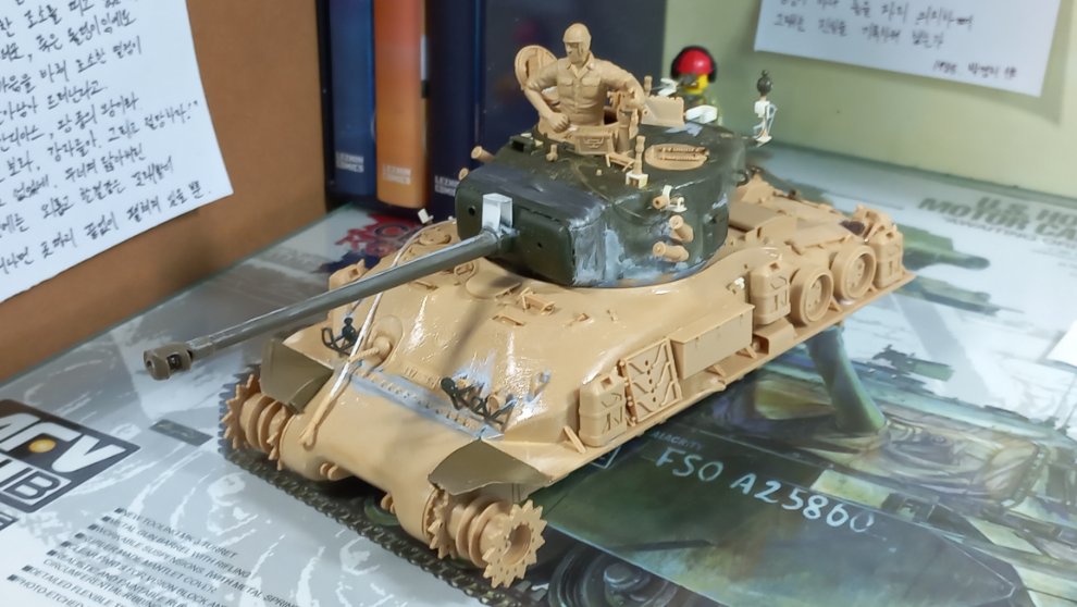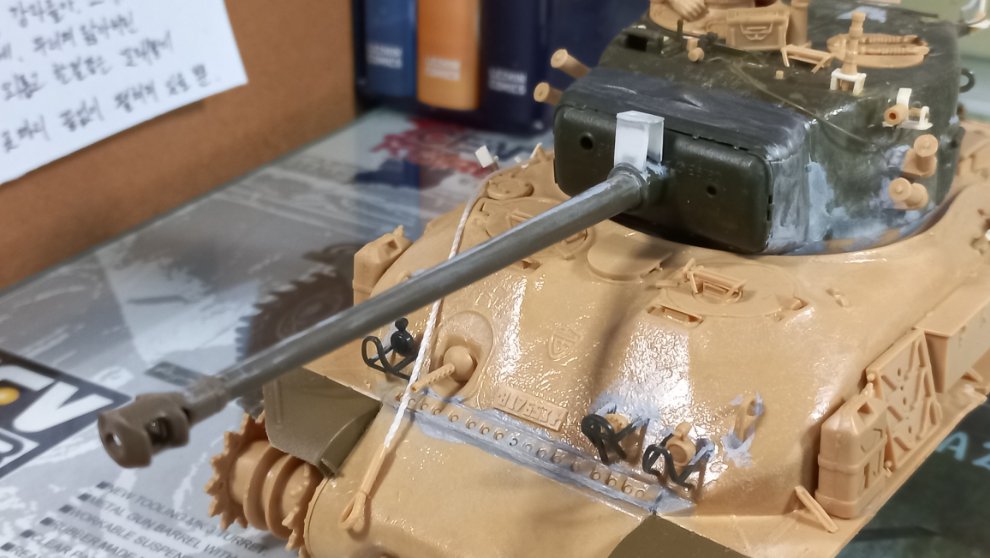 나중에 타미야 M51 말고도 타미야 M51과 이지에잇을 서로 포탑만 교환해서 만들고 싶었는데 지금 만들고 있는 이 녀석 외에는 도저 단 셔먼은 한국전쟁 당시 미해병대 105mm 셔먼 빼곤 따로 만들 일이 없을 듯 싶으니 이탈레리나 추후 다른 셔먼을 만들다보면 엔진 데크 남는거를 가져와 바꿔줘야 할 것 같네요.