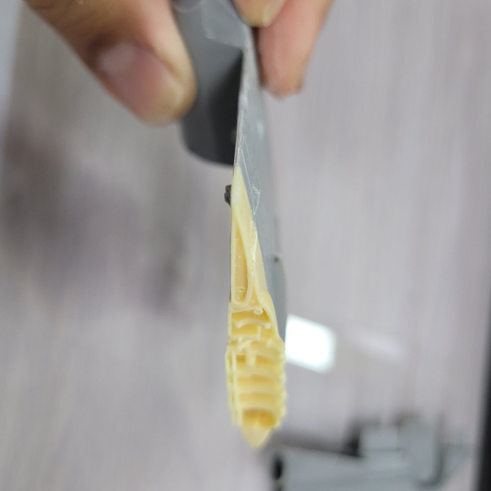 파라곤 윙폴딩 디텔은 참 좋은데, 이게 날개 접힘구간을 양쪽씩 약 8미리씩 잘라내고 붙이는건데 날개 두께도 맞춰줘야하고, 길이가 안맞으면 8미리 아닌 7.5미리? 8.5미리 등등 눈대중으로 맞춰봐야하니 이 날개부 손질하는데만 정상적인 키트한대 제작시간이 소요되는 느낌입니다.