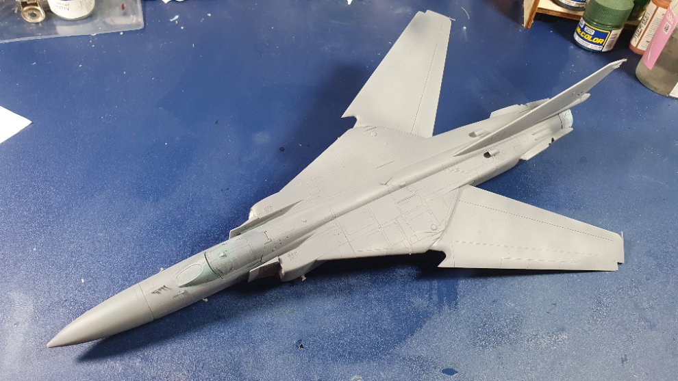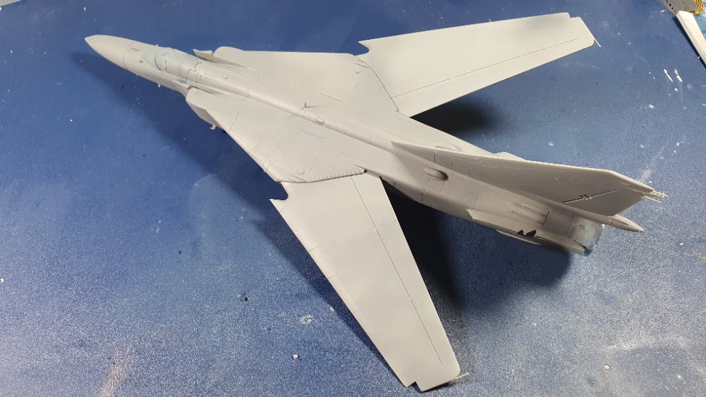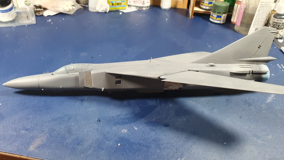 Mig-23의 조립을 모두 끝냈고 서페이서까지 올려줬습니다, 전체적인 조립성은 그다지 좋지않고 디테일의 밀도도 좋다고 말할 수는 없을 것 같습니다 전반적으로 좀 들쭉날쭉한 디테일 수준을 보여줍니다
