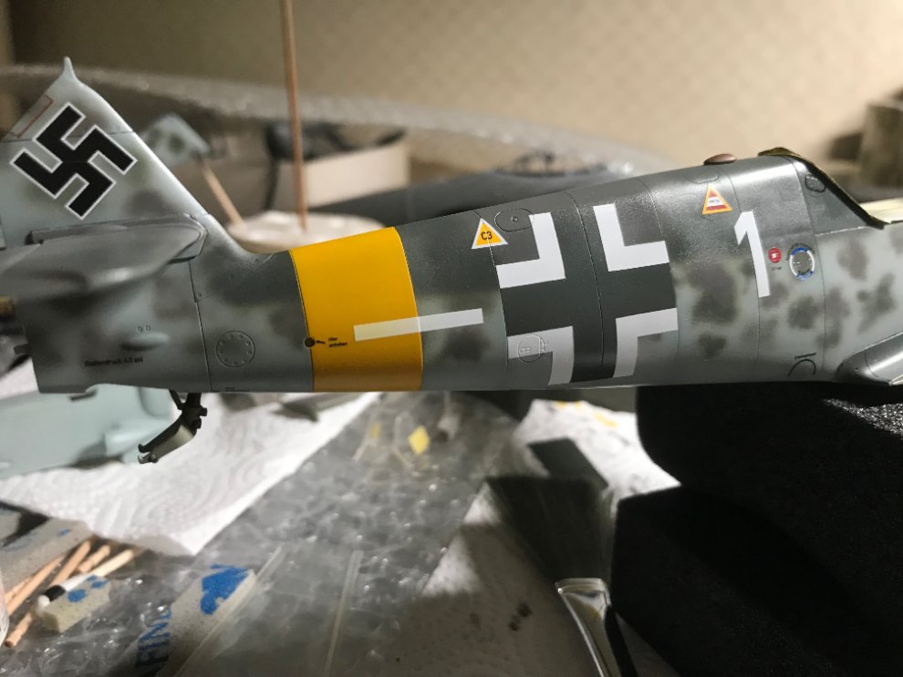하나는 데칼작업 후 도색을 한군데 해야 하고, 또 하나는 프로포션에 문제가 있는데 주익 선단 중앙부 하부에 3개의 파츠로 이루어진 곳