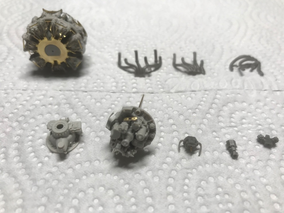 앤진 본체 앞뒤로 에칭작업이 많습니다. 1/32라면 그냥 타공하고 와이어 연결하는게 더 쉬운거 같습니다.