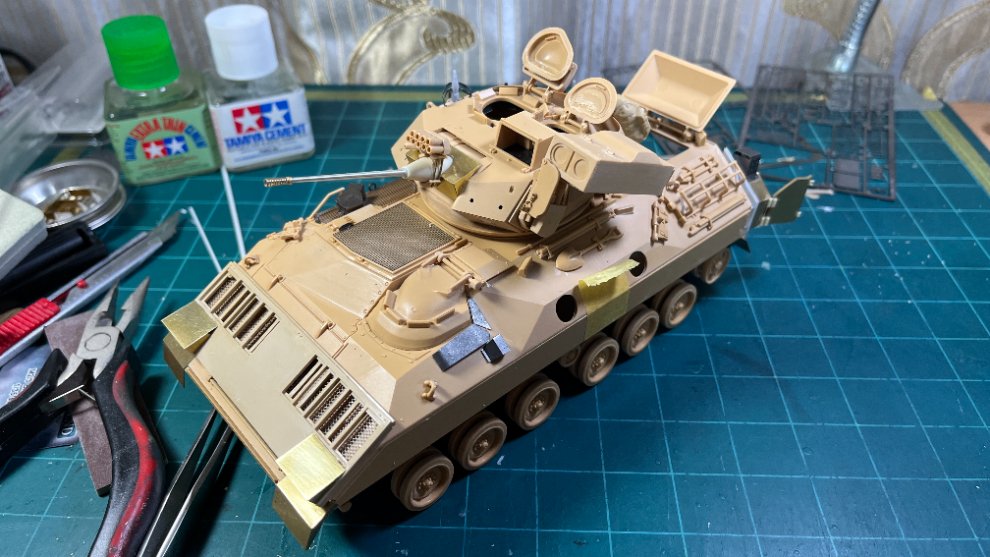 고등학생이 된 1991년에는 걸프전이 발발하면서 Tamiya에서 M2A2 Bradley가 발매되었고, 고2인 1992년에 동생과 용돈을 합쳐서 구입하고 만들었던 적도 있었습니다. 당시에는 사막색으로 도장하지는 못하기도 했고, M2A0의 인테리어를 넣어서 멋지게 만들어보고 싶었는데 올해 30여년만에 고등학생시절의 꿈을 이루었지요.