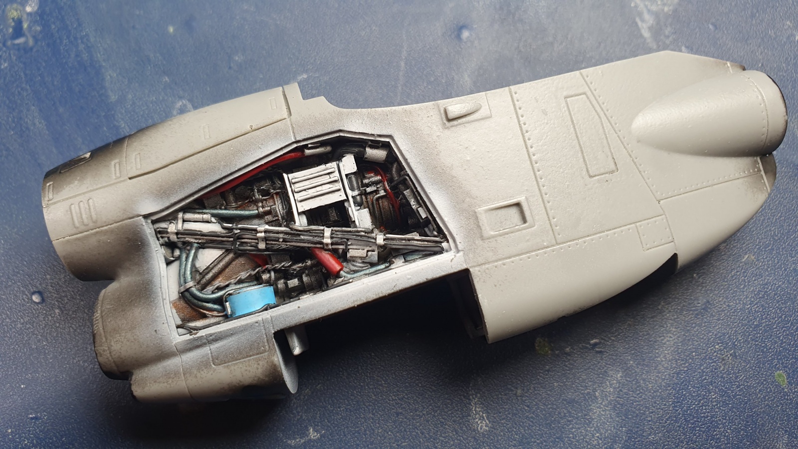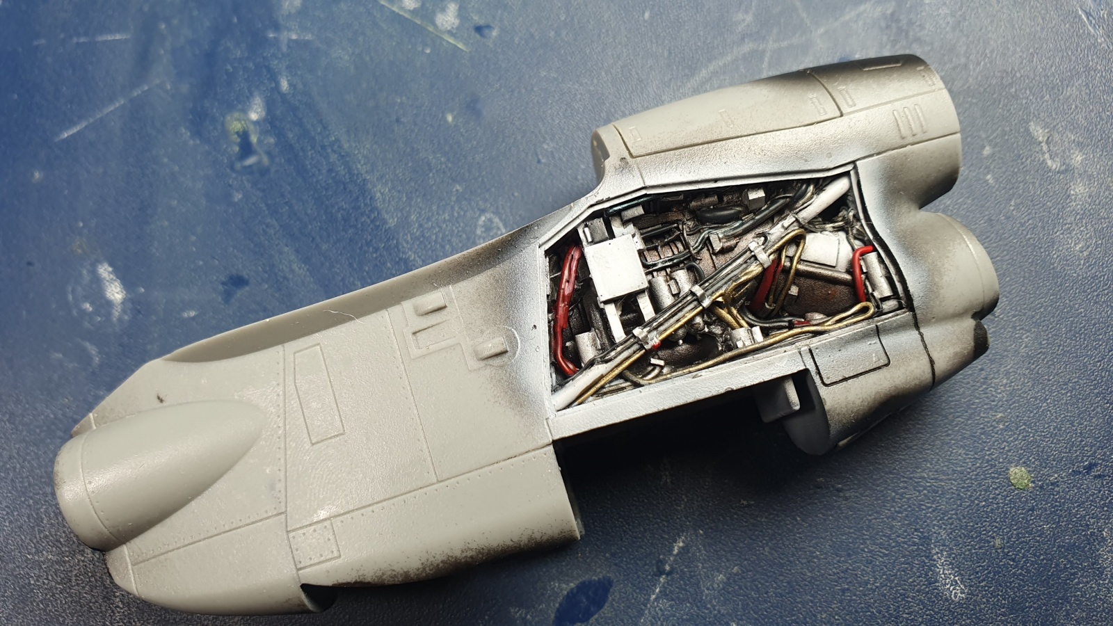 blackdog사의 별매 엔진파트를 도색했습니다, 원래 엔진 상면 내부도 재현이 되어있는데 캐스팅 상태가 너무 좋지 못해서 커버로 덮어버렸습니다, 커버를 열더라도 커버를 지지해주는 암과 걸쇠가 생략되어있어서 그것대로 문제가 됐을 것 같네요.
