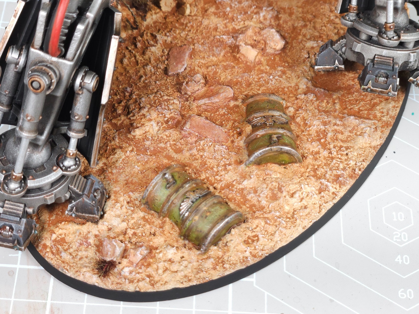 이번에 베이스의 토양은 밑 색으로 단색 올린 후 바로 바예호 올드 러스트 피그먼트를 올려봤는데, 기존에 워싱으로 하던 것 보다 쉽고 빠르고 퀄리티있게 올라가는 것을 보니 그 간에 고생했던 게 한 번에 해소되는 기분이었습니다.
