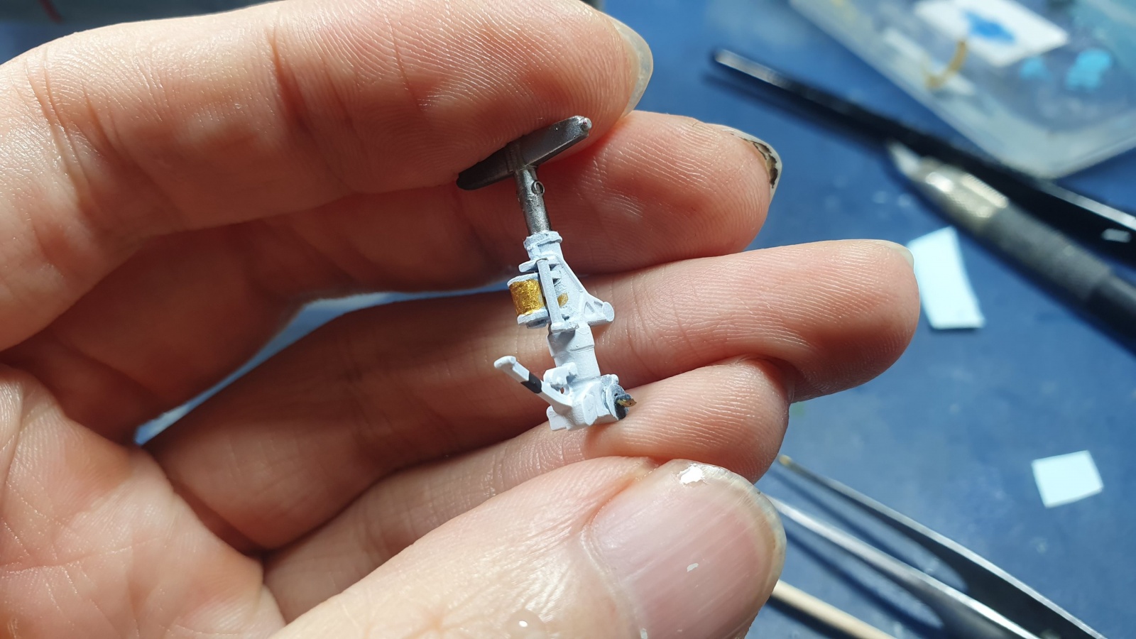 계속 작업을 이어나가고 있습니다, 노즈기어의 저 구조물은 잘못된 위치에 붙어있어서 잘 도려내서 위치를 수정해 주었습니다.