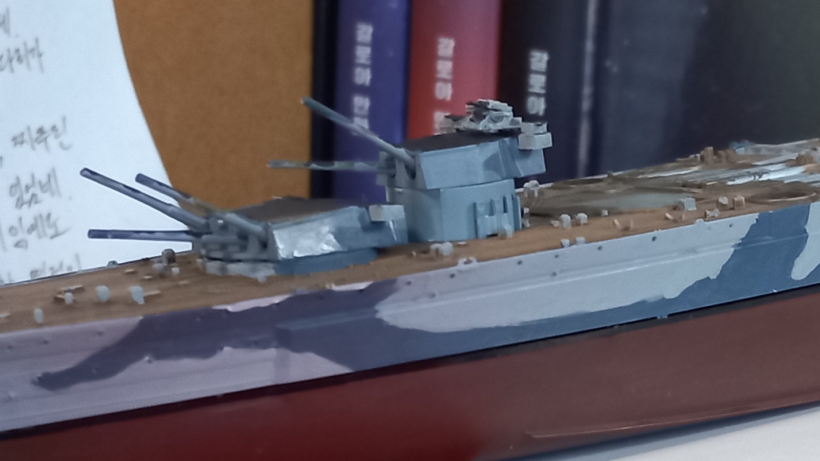 함교를 비롯한 여러가지 구조물은 역시나 모듈화 되어 있어서 도색할때도 편리하게 배려해준 모습이 좋은데 이거 갑판의 환풍구 같은 작은 부품들을 포함해 쌀 반톨 만한 부품이나 쌀 한톨 만한 부품들이 많아서 진척이 매우 더딥니다. ;; 그러고보니 플라이호크 설명서에선 함교 구조물의 슈퍼 스트럭처는 선체 위장색의 진한 파랑, 나머지 구조물의 슈퍼 스트럭처는 주포탑처럼 검정색을 칠하도록 되어 있더군요.