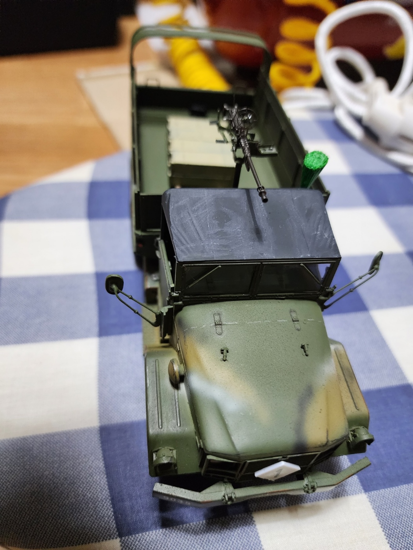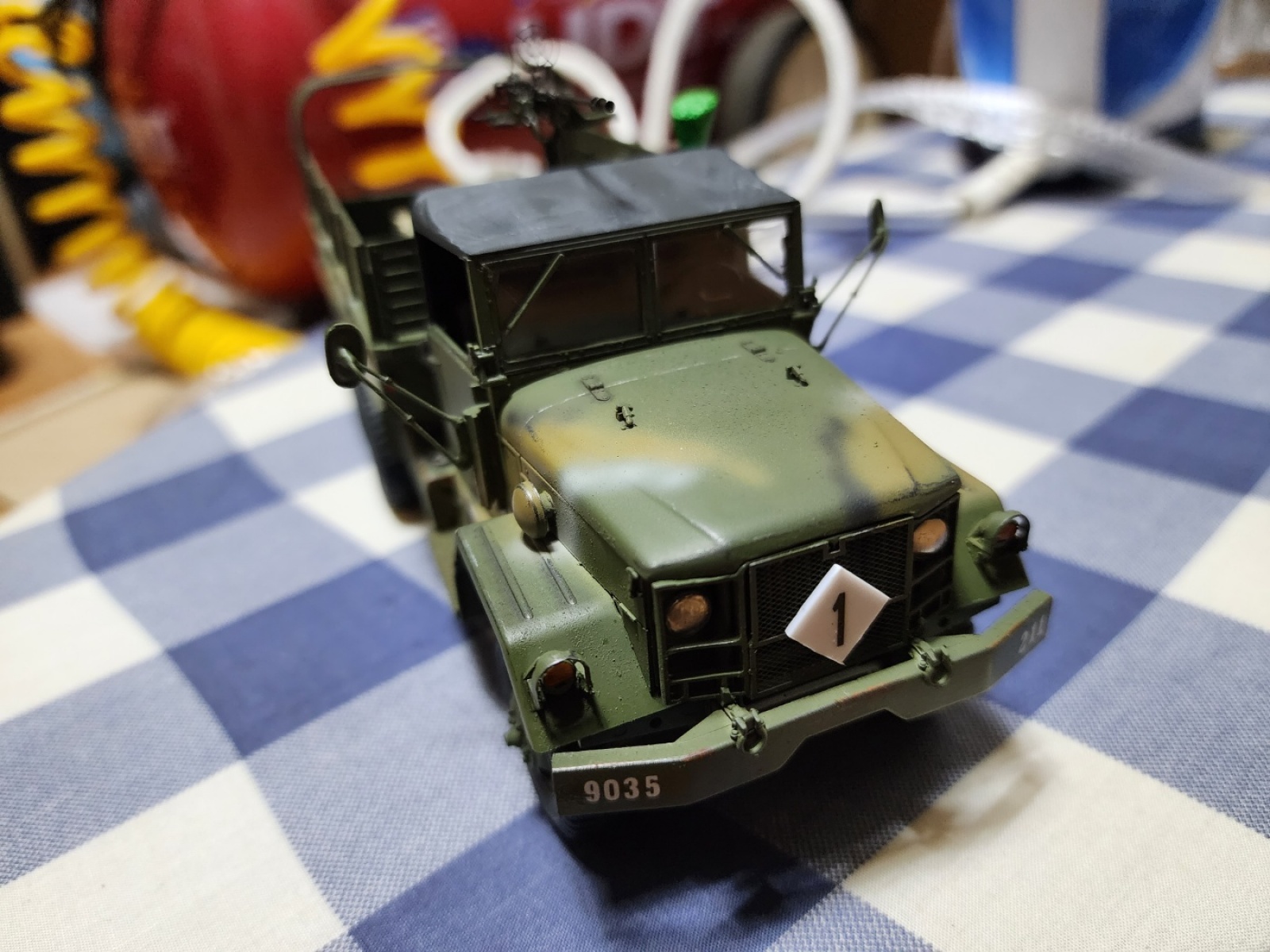 K511은 트럭이라 별도로 대공장치대를 용접해서 달고 폴대를 뒤쪽으로 돌려서 50을 장착하고