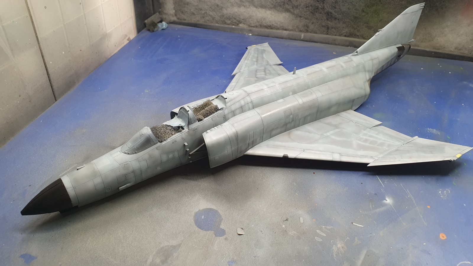 기본도색을 해주었습니다, 조형촌의 팬텀은 전반적으로 좋은 키트라고 생각됩니다 설계도 훌륭하고 코어금형으로 베리에이션을 모두 뽑을 수 있게 설계되어있더군요, 몇가지 재미있는 점은 저명도 편대등의 해석인데 오래된 하세가와의 경우 몰드를 새겨넣고 해군형의 경우 몰드를 밀어내게 되어잇지만 조형촌은 몰드가 없고 공군형에 데칼을 붙이도록 설계되어 있습니다 - !정정합니다, 부품이 있는데 제가 못찾았습니다! , 이 외에 결합부 등도 원래 케릭터물을 만들던 회사여서 그런지 몰라도 굉장히 견고하게 되어있습니다.